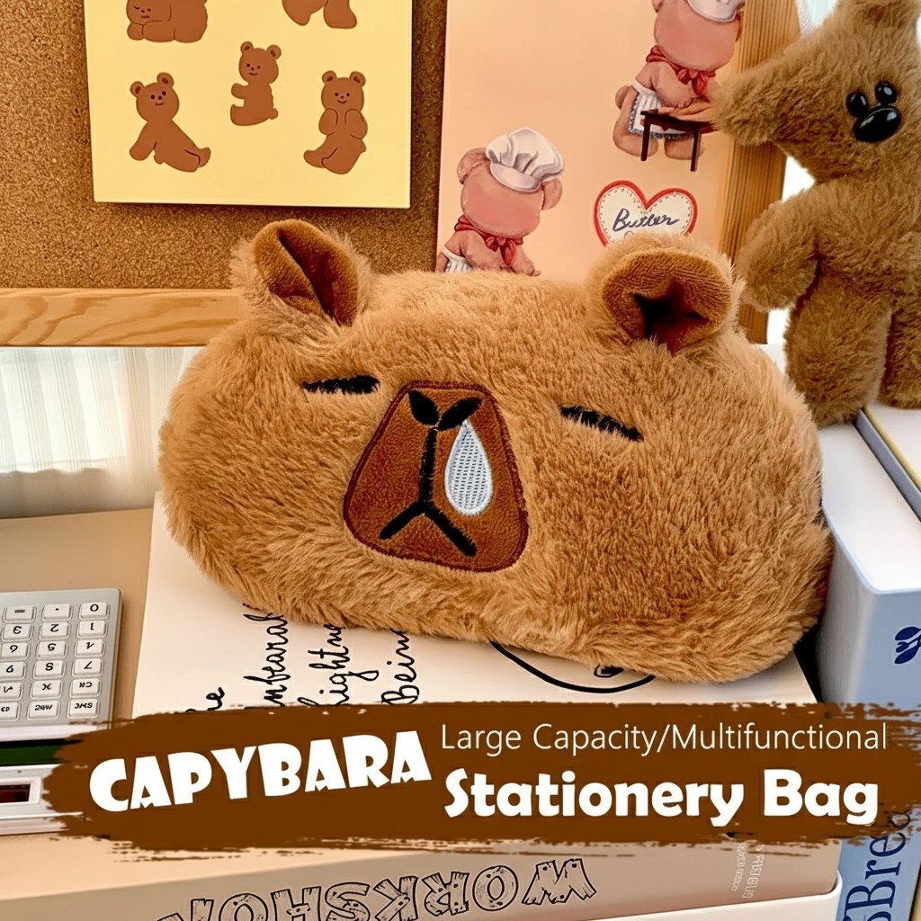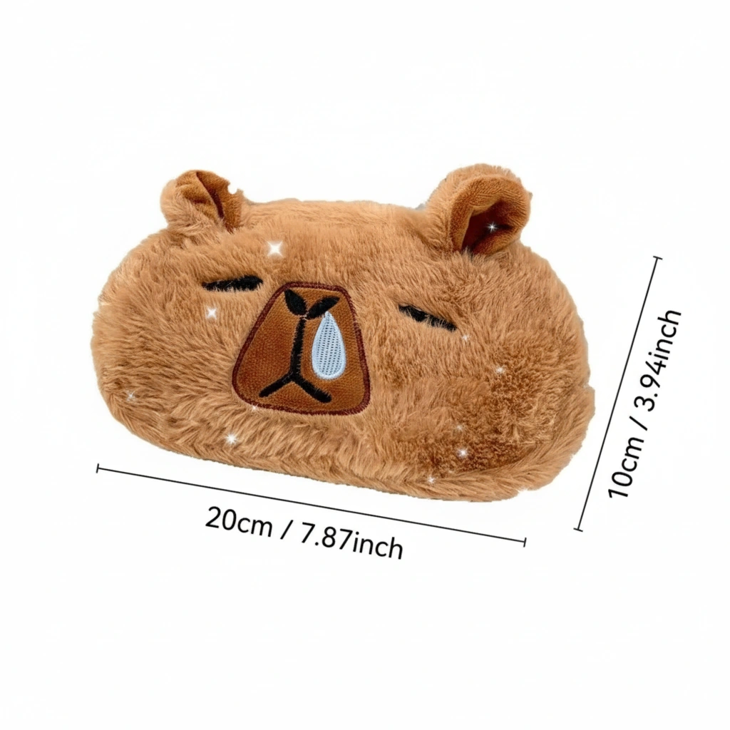 Fluffy Capybara Plush Pencil Case (3 Styles) – Soft Faux Fur Stationery Pouch & Pillow (Crying / Angry / Classic)