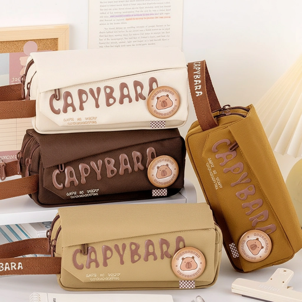 Large Capacity Canvas Capybara Pencil Case (4 Colors)