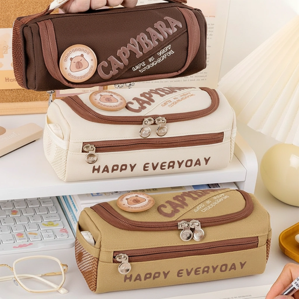 The “Sport Mode” of Pencil Cases. Ready for adventure (or just a long day of classes)? This Capybara Utility Canvas Pencil Case is built for functionality. Combining a rugged canvas exterior with smart design details, it’s the perfect organizer for students who need their gear to be versatile.