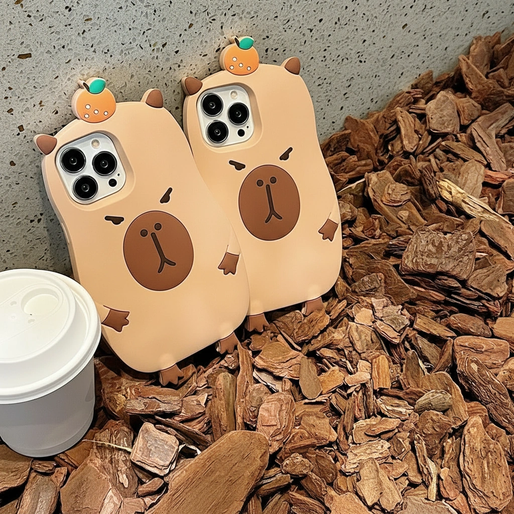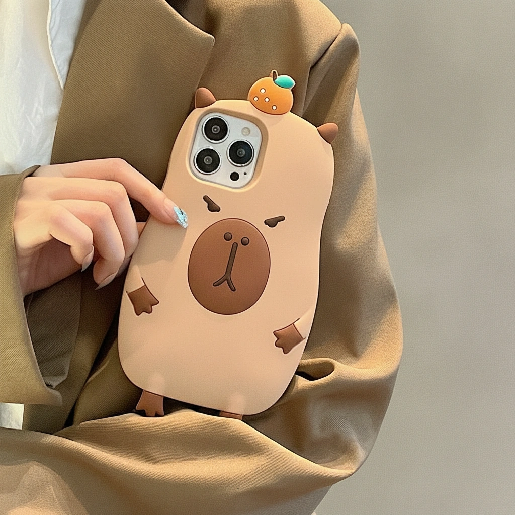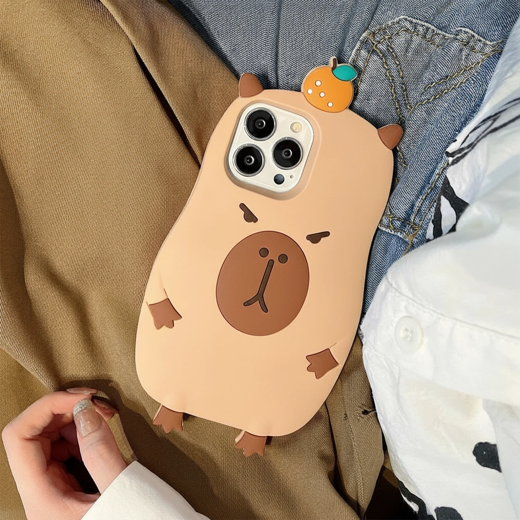 Cool 3D Capybara Phone Case with Sunglasses & Flower – Soft Silicone Cover