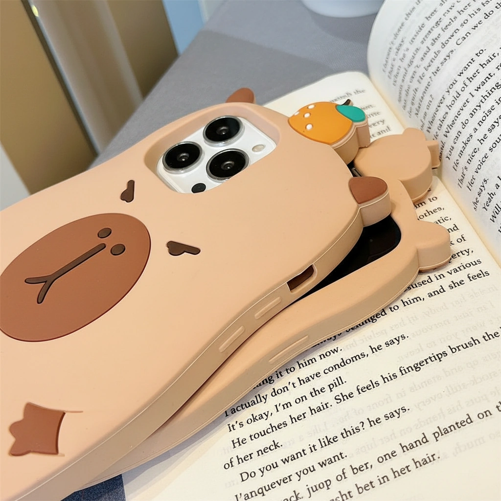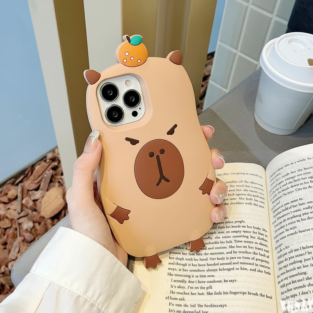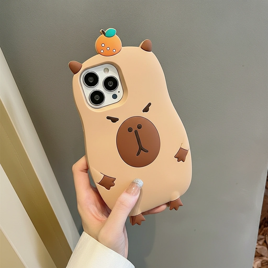 Cool 3D Capybara Phone Case with Sunglasses & Flower – Soft Silicone Cover