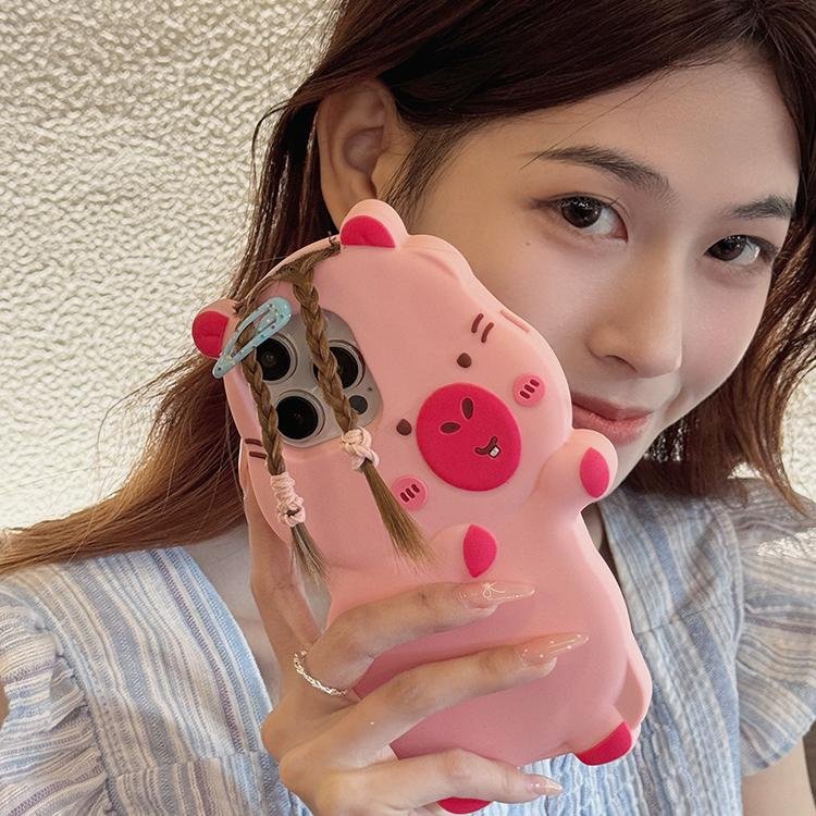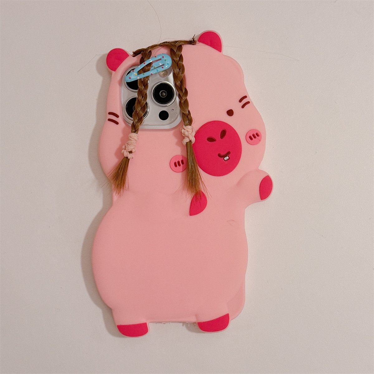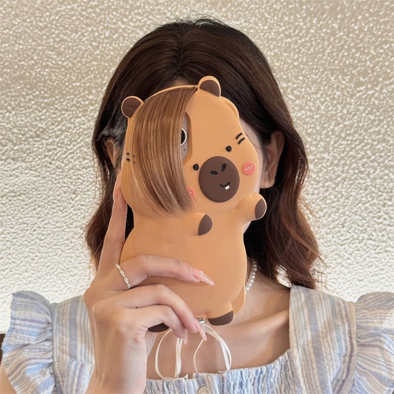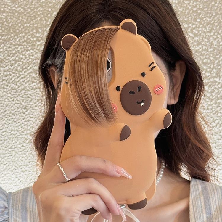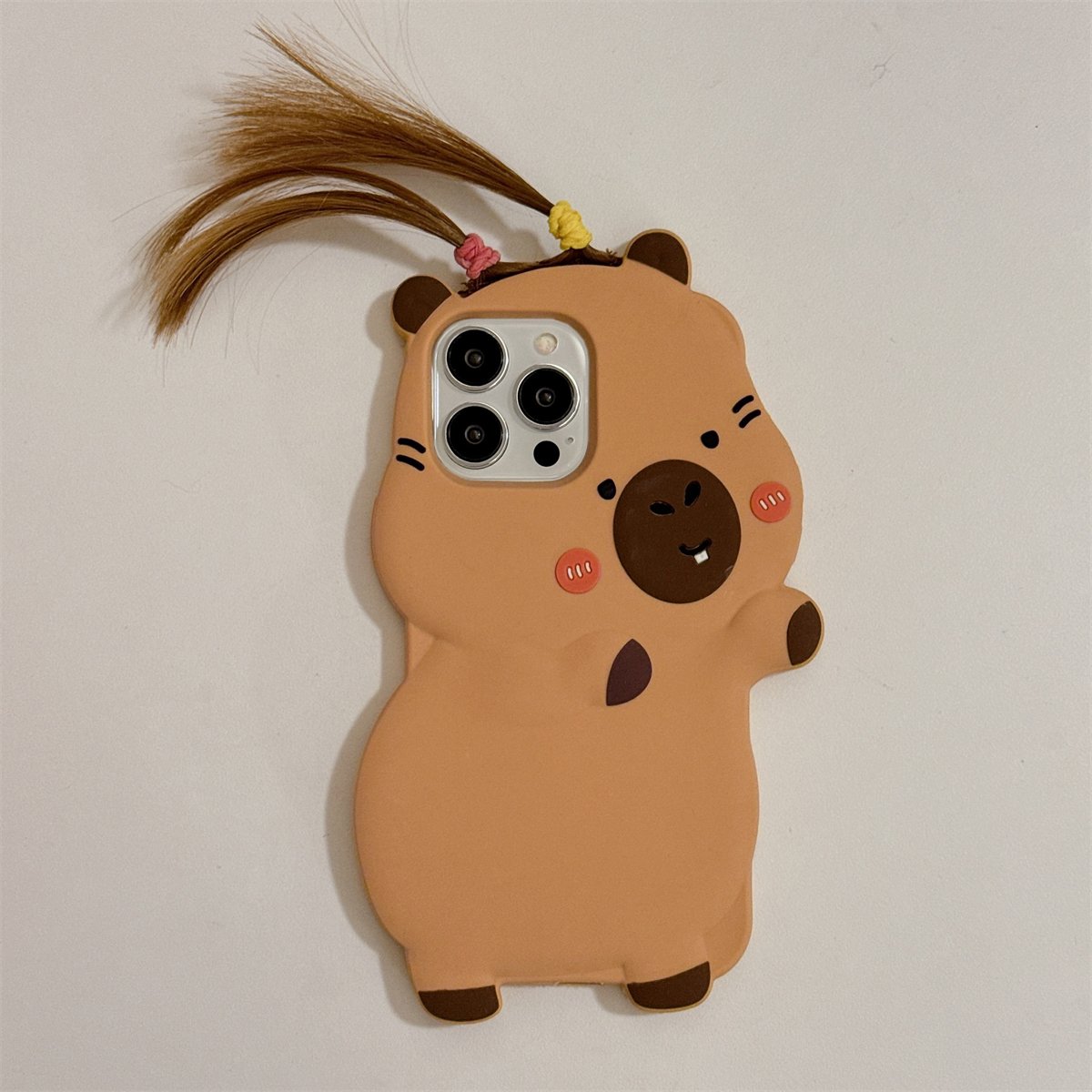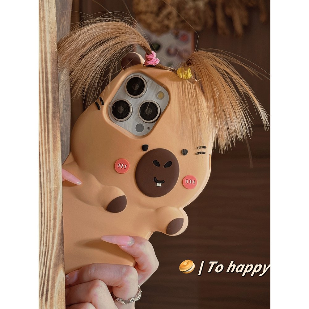 Funny Capybara Phone Case with DIY Hair Styling (2 Colors) – Interactive Soft Silicone Cover