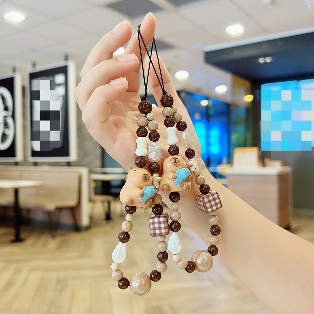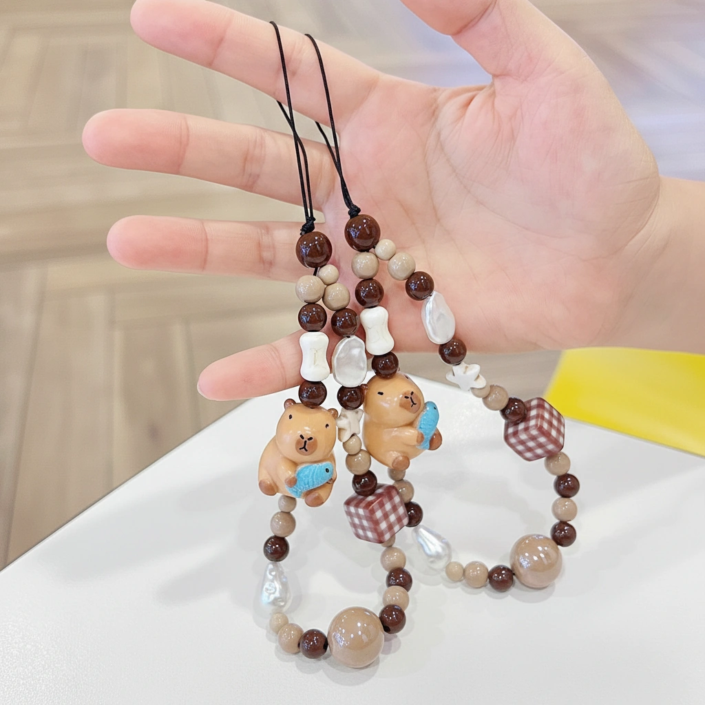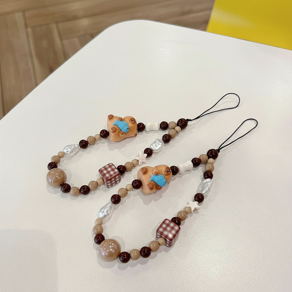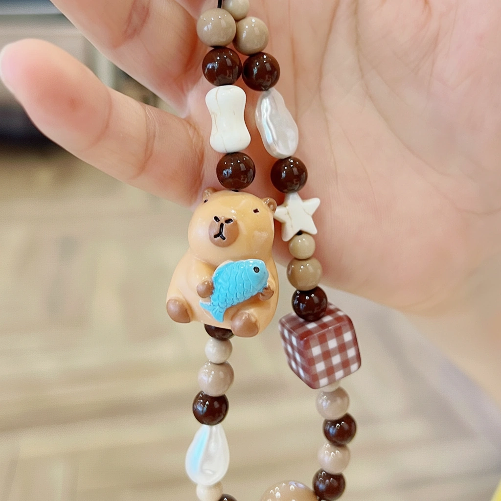 Aesthetic Beaded Capybara Phone Charm – Y2K Style with Star & Plaid Beads