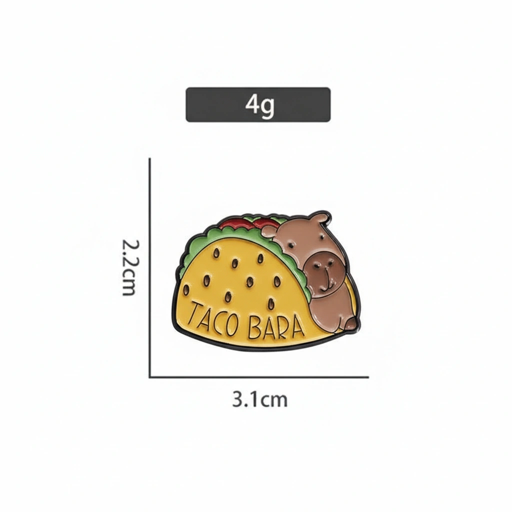 5pcs Capybara Foodie Pin Set – Taco, Donut, Coffee & Birthday Enamel Badges