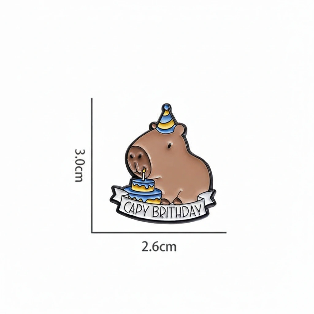 • The Party Animal: A festive capybara wearing a blue party hat and holding a birthday cake with a candle, featuring the banner “CAPY BIRTHDAY”.