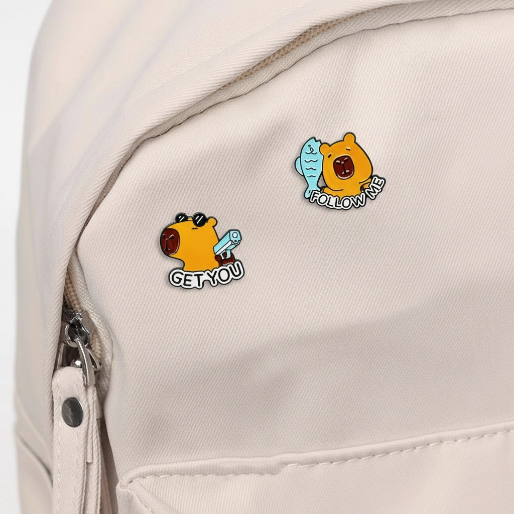 Wear Your Life Motto Add some personality to your outfit with this collection of four “Life Motto” capybara pins. This set moves away from just being cute and adds a layer of internet humor and attitude. Whether you are trying to accumulate good karma, escaping the daily grind, or just feeling cool, there is a badge here to match your current state of mind. These designs feature bold text bubbles, making them stand out clearly on backpacks and lanyards.