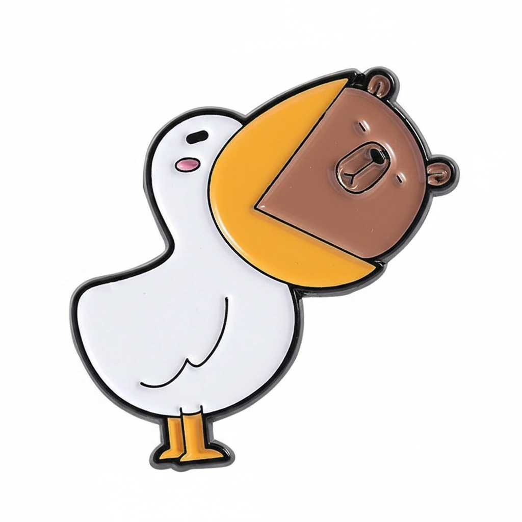 Funny Pelican & Carnivorous Plant Biting Capybara Pin