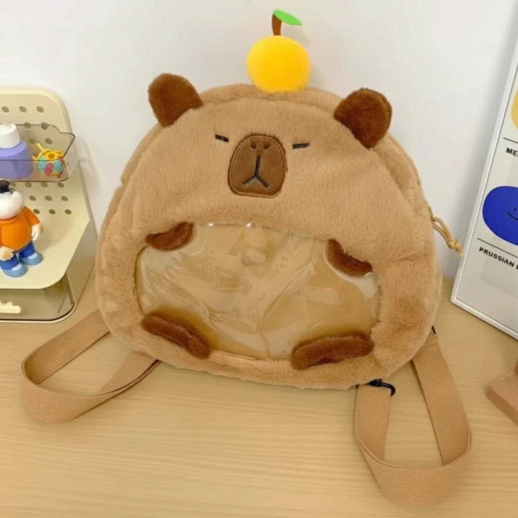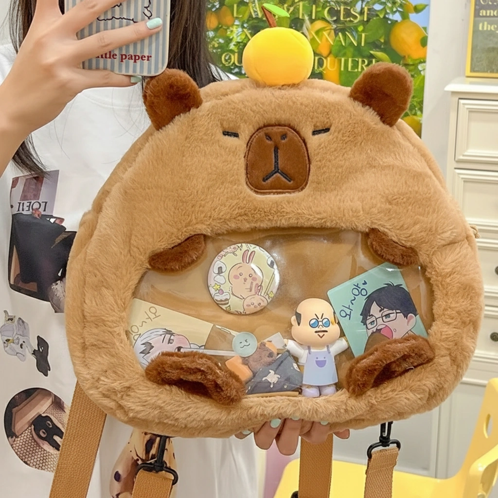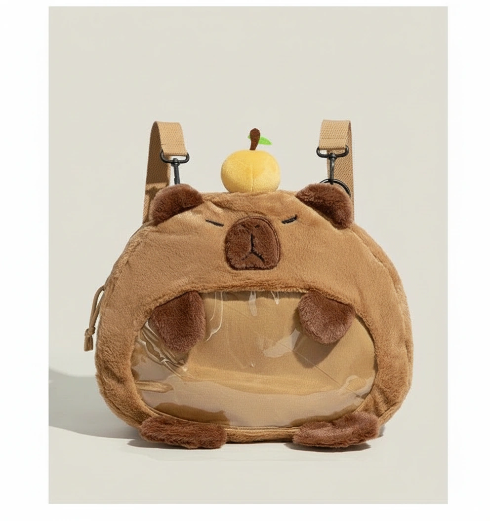 Cute Capybara Plush Backpack with Transparent Ita Window – Fuzzy Display Bag (12.6″)