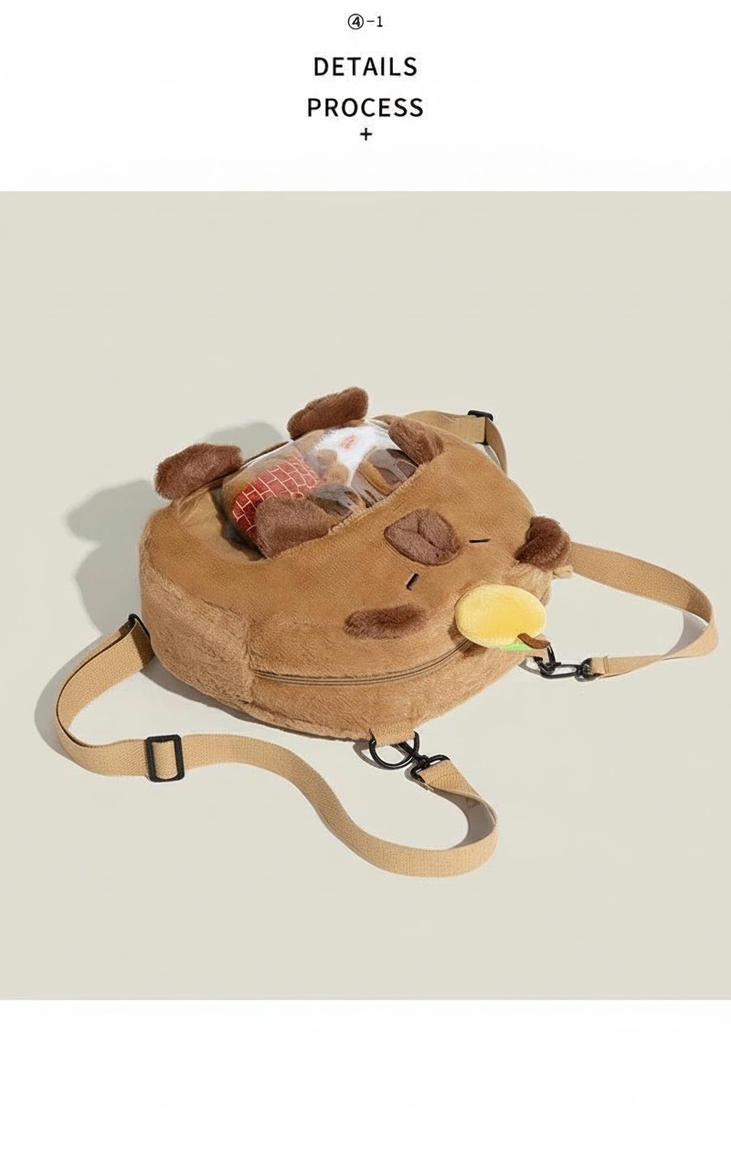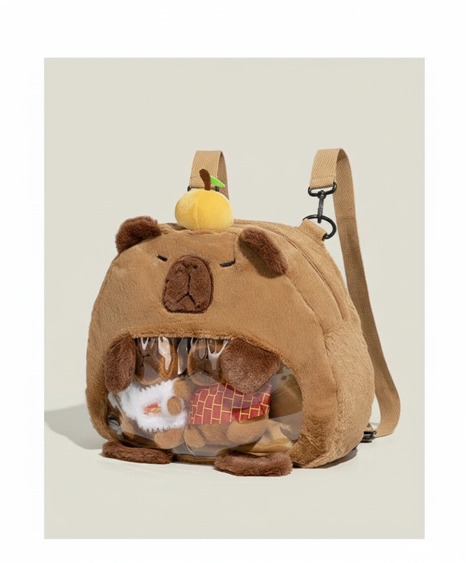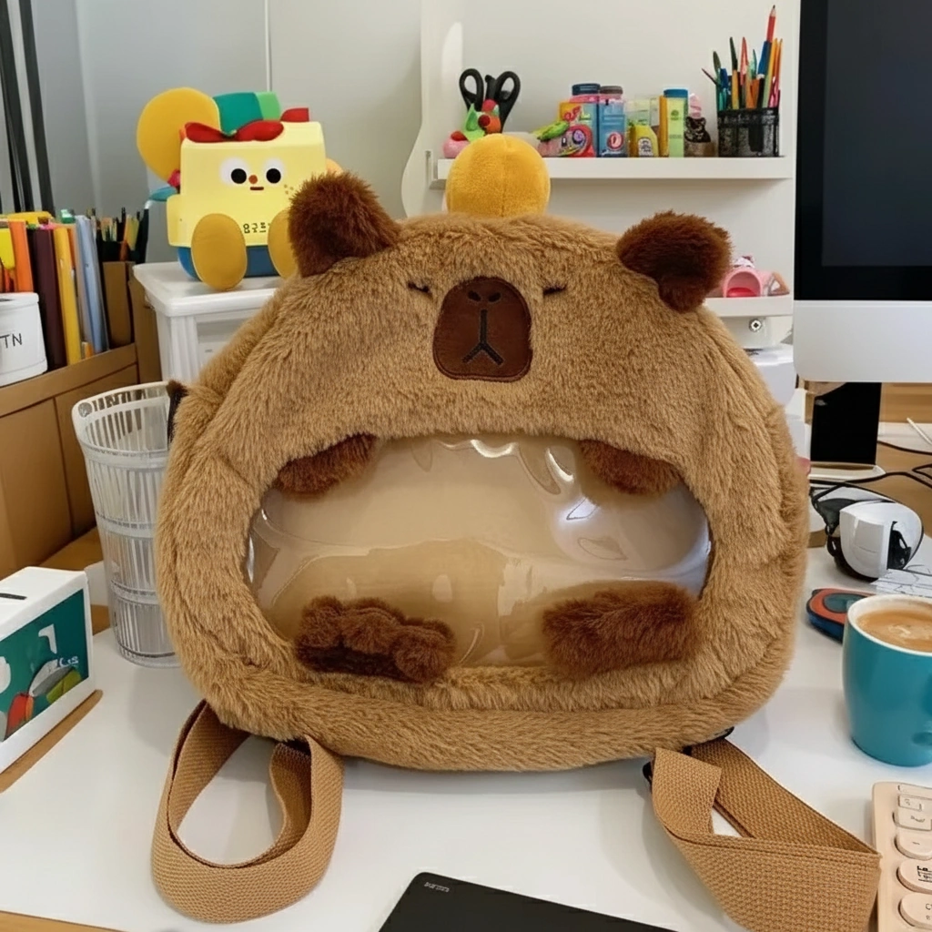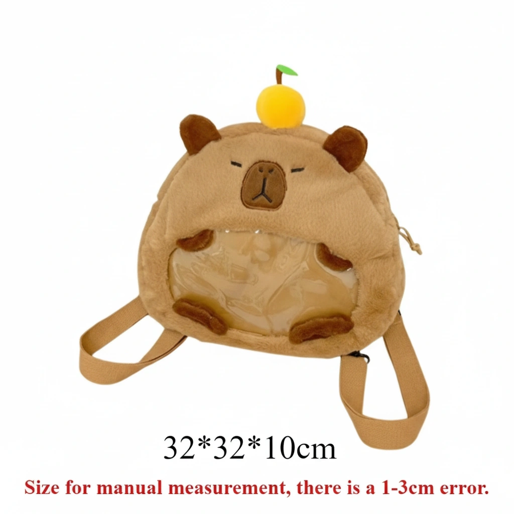 Cute Capybara Plush Backpack with Transparent Ita Window – Fuzzy Display Bag (12.6″)
