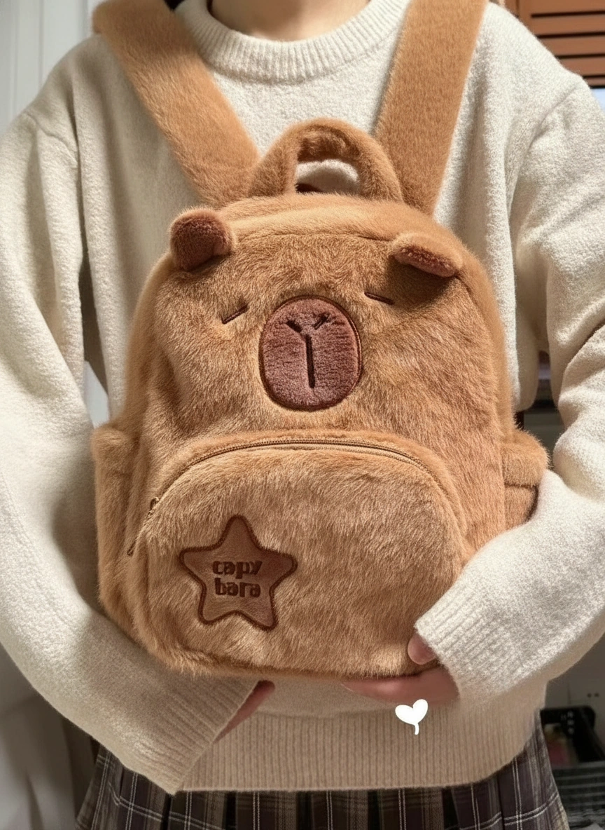 If you could turn a warm hug into a bag, this would be it. This Mini Capybara Backpack is crafted from ultra-soft, faux-fur plush material that feels just like a teddy bear. It’s the ultimate accessory for cozy autumn and winter vibes.