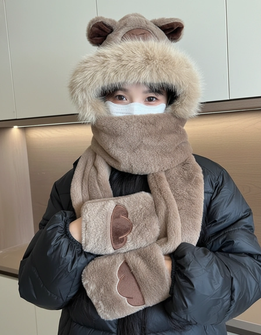 - Style: Premium 3-in-1 (Hat + Scarf + Paw Mittens).