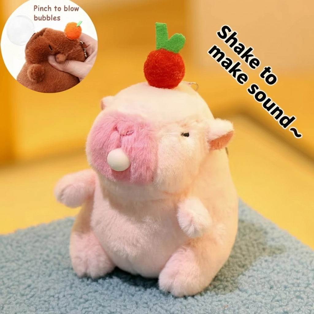 Capybara Plush Keychain – 3 Colors, Shake for Sound & Bubble Blowing – 12cm Soft Bag Pendant