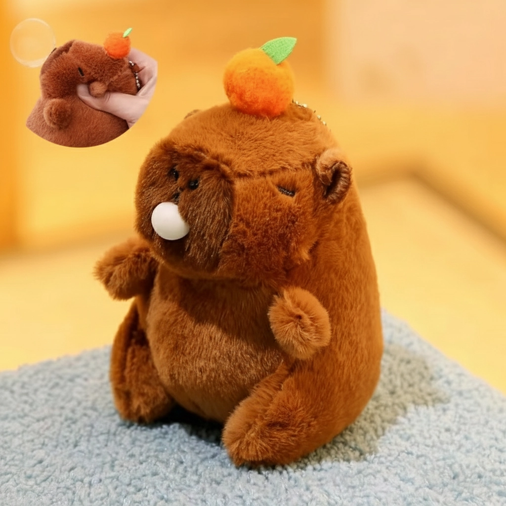 - Interactive Bubble Action: Each capybara features a soft white bubble on its nose. Simply squeeze the plush, and watch the bubble expand. It is a satisfying fidget feature.