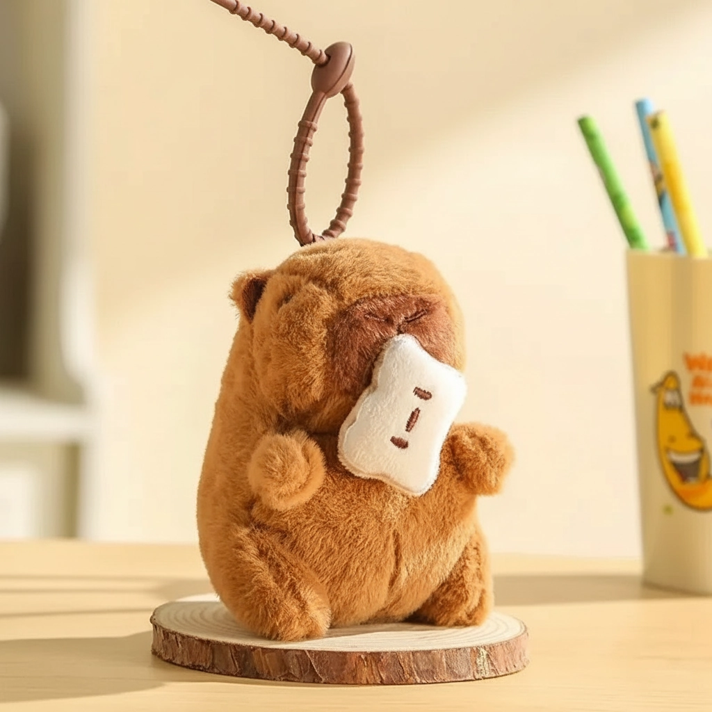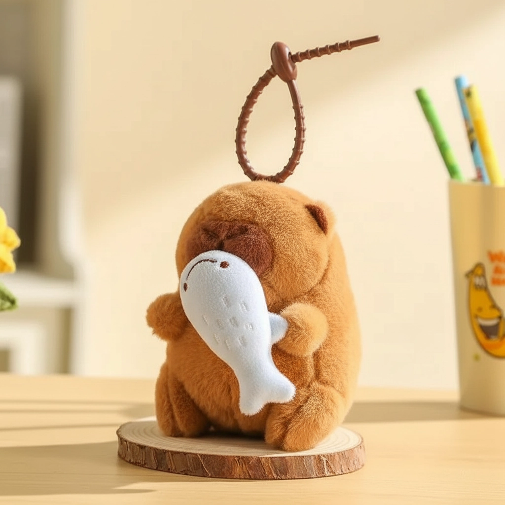 A Keychain That Interacts with You Looking for a capybara keychain that does more than just look cute? This interactive series brings your bag charm to life. It combines the soft, fuzzy appeal of a standard plush pendant with a fun, mechanical twist. At 12cm tall, it is the ideal size to make a statement on your backpack or tote while keeping your hands busy with its satisfying pull-and-shake action.