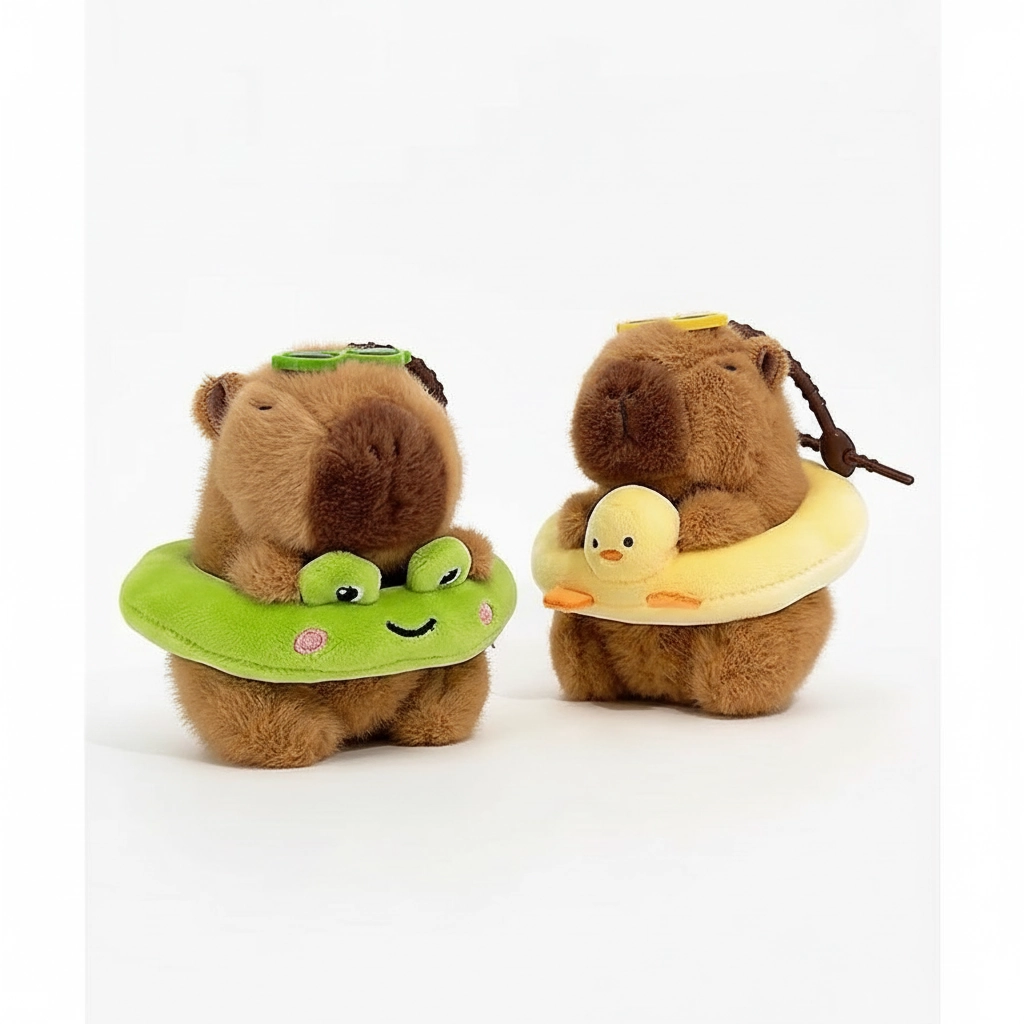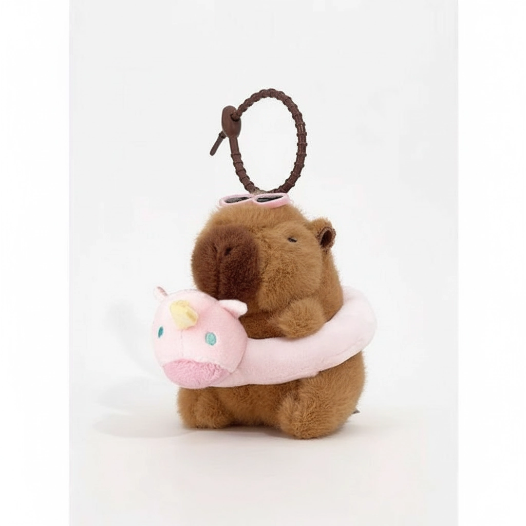 Your New Poolside Companion Bring the fun of a pool party to your everyday accessories. This adorable Capybara Plush is ready to cool off, sporting a plump, colorful swim ring around its waist. It captures the relaxed, carefree vibe of a summer afternoon, making it a refreshing addition to your keychain collection.