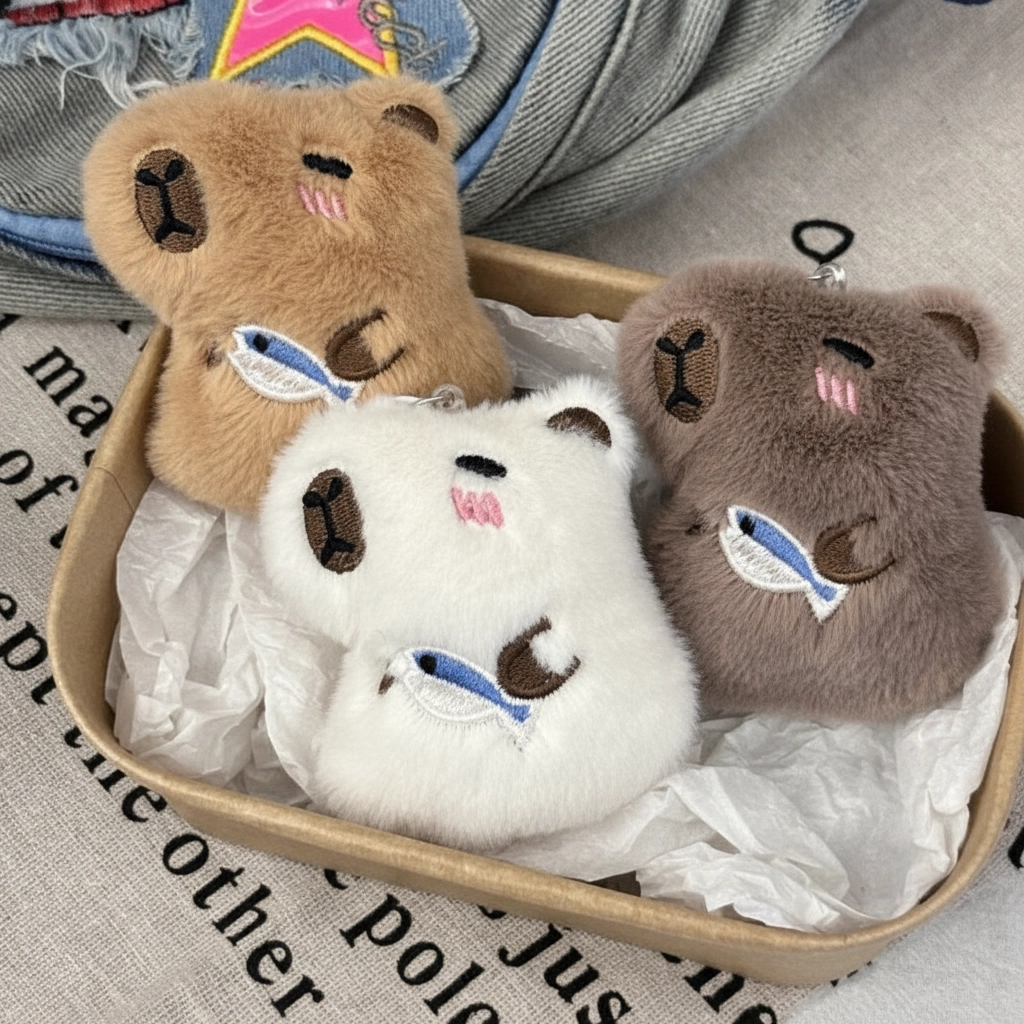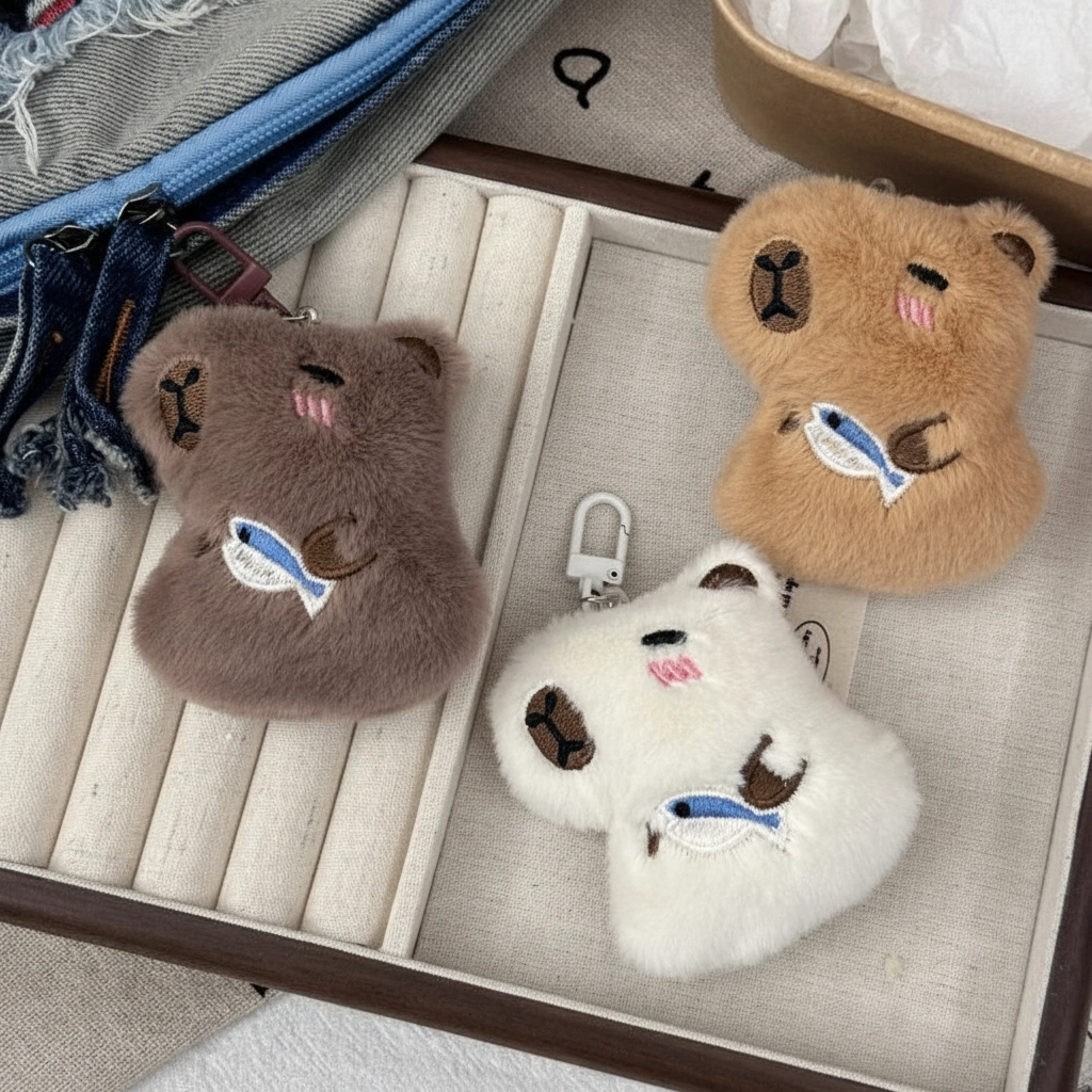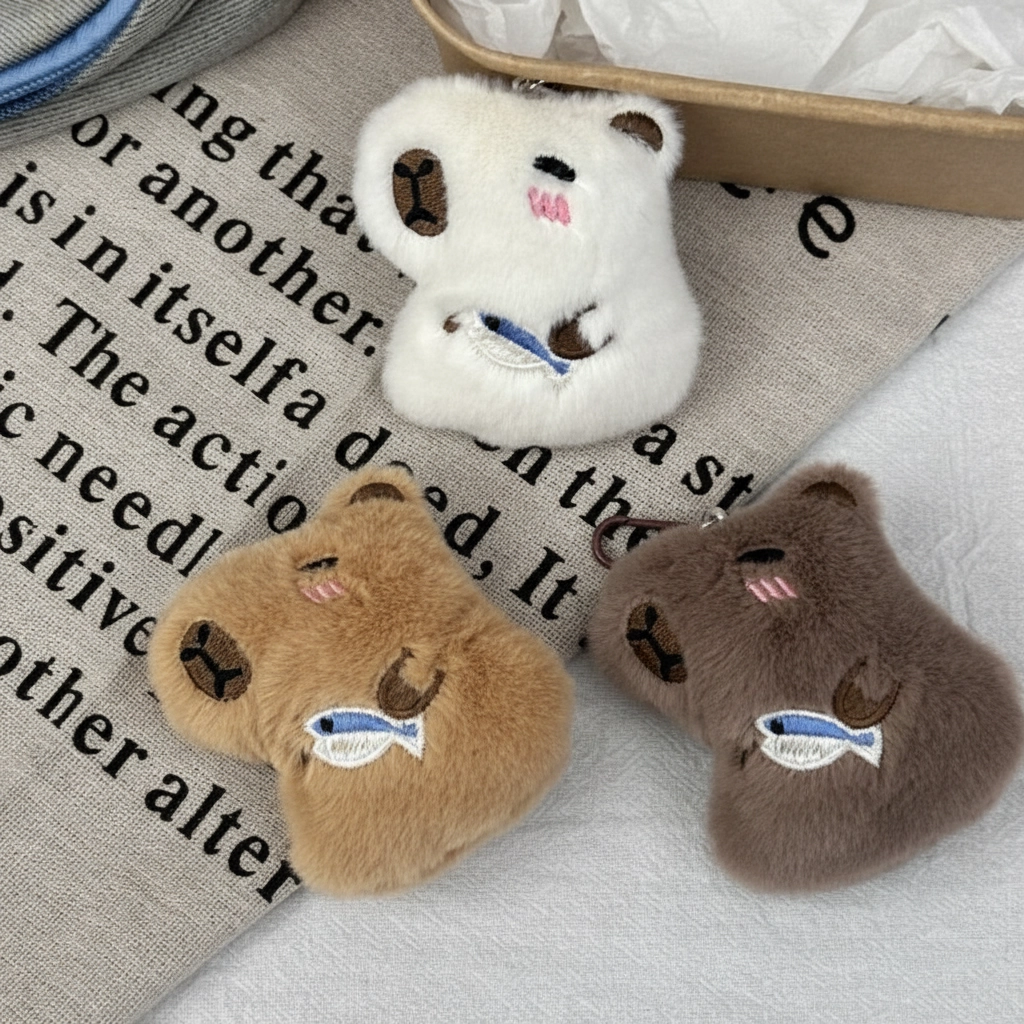 Choose Your Capybara Style While they all share a love for snacks, these fuzzy friends come in three distinct fur colors. Whether you prefer a deep brown, a soft beige, or a classic khaki, you can select the one that best matches your backpack, purse, or personal aesthetic.