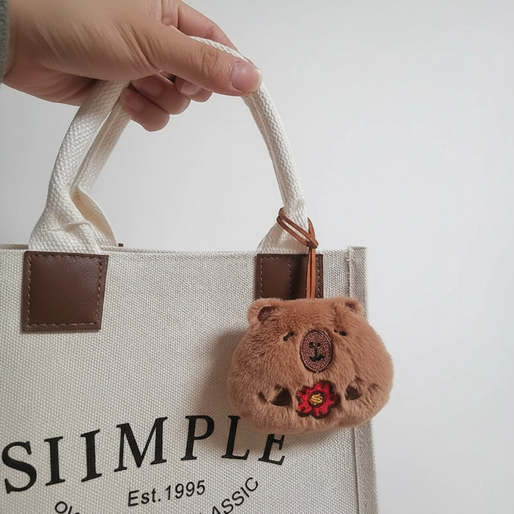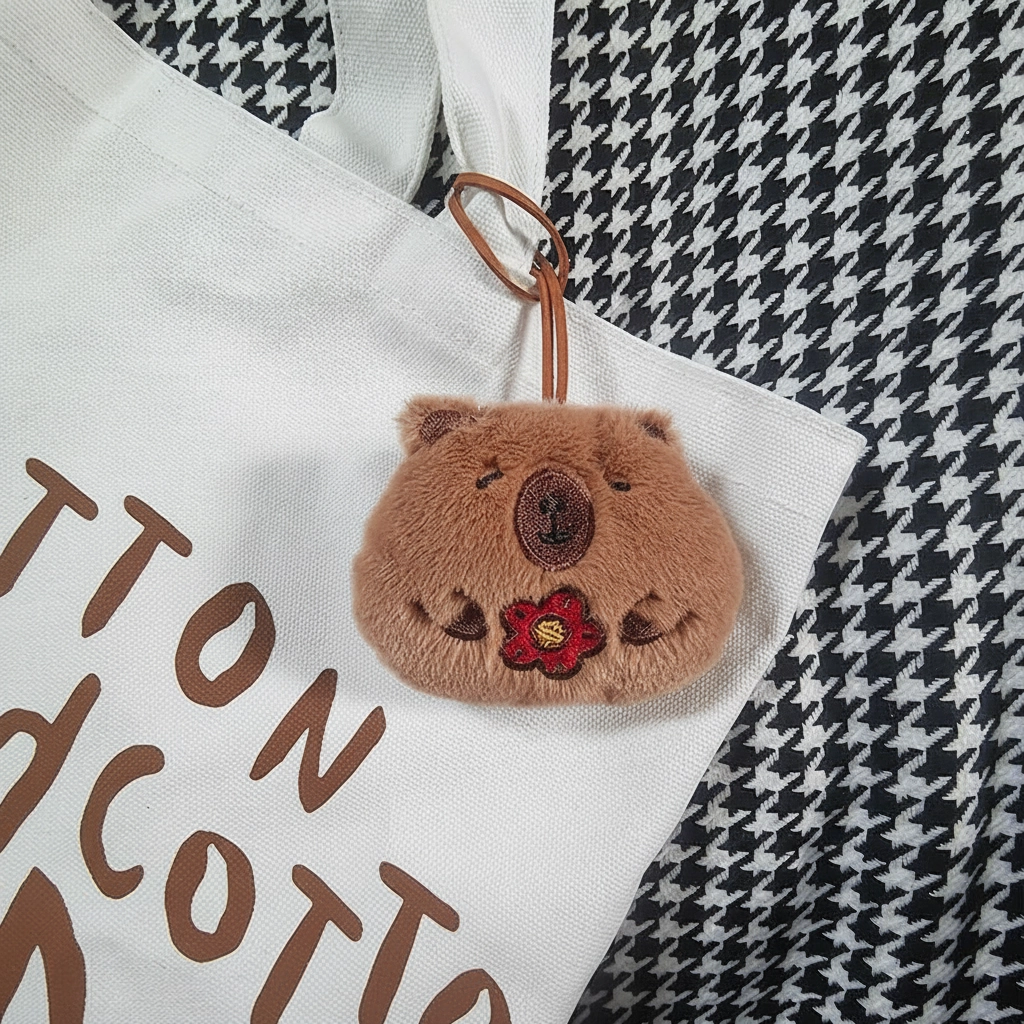 A Charming Way to ID Your Bag Combine practicality with adorable design using this Flower Edition Capybara Bag Tag. Unlike standard plastic luggage tags, this accessory is made of soft plush, shaped like a flattened, cozy cushion. It serves a dual purpose: adding a cute personality to your belongings while helping you identify your bag in a crowded room or airport carousel.