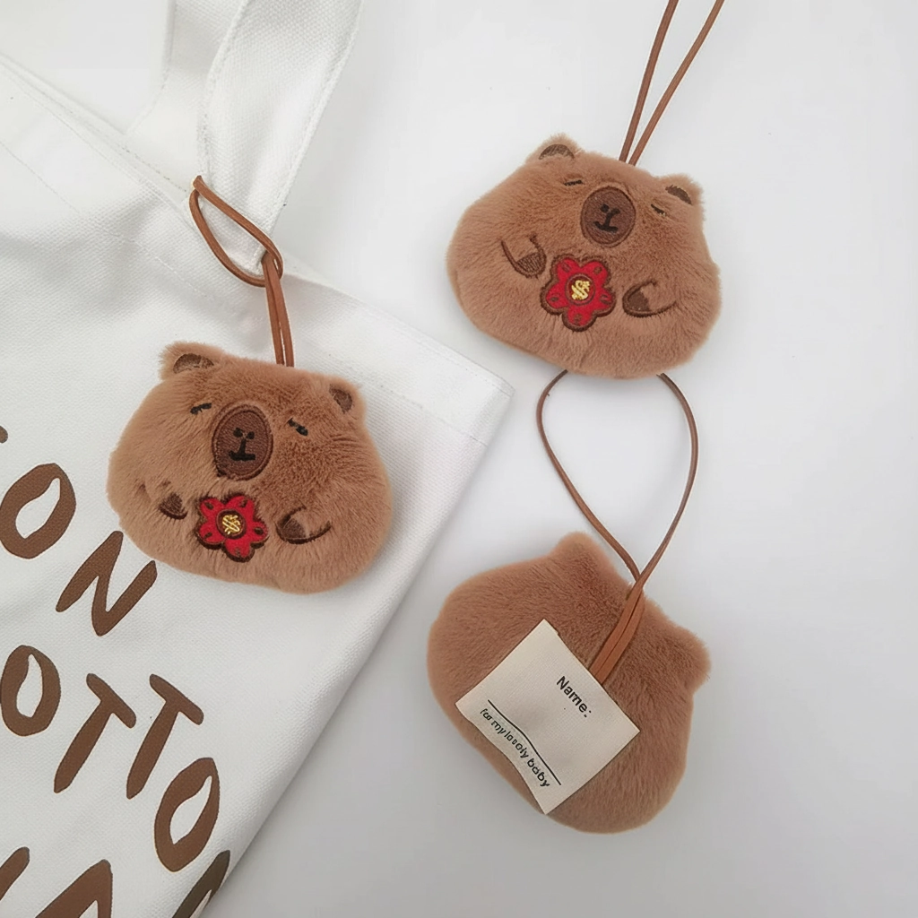 Lucky Flower Capybara Plush Name Tag – Soft Stuffed Bag Charm with Write-On Label