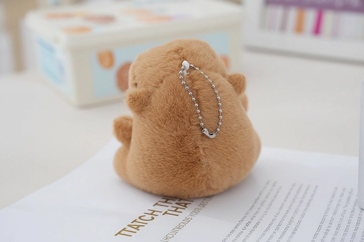 Soft Texture & Easy Attachment Crafted from high-quality, fuzzy brown plush fabric, this toy is delightful to touch. It comes equipped with a silver ball chain, making it simple to attach to zippers, lanyards, or keyrings without adding significant weight to your daily carry.