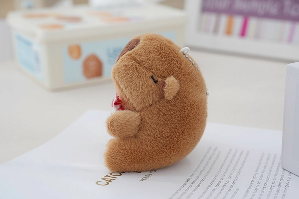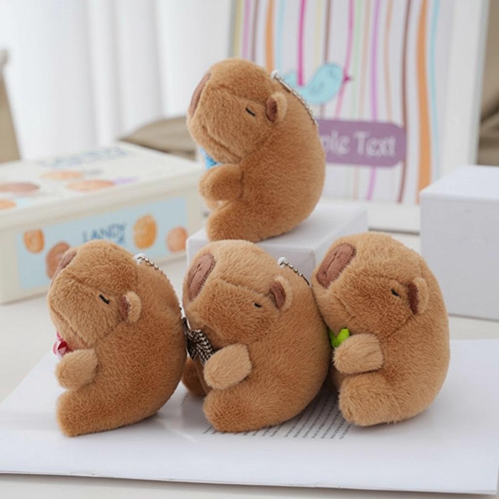 Charming “Begging” Pose Unlike the standard crawling or standing dolls, this capybara is designed in a sitting “begging” posture. With its head tilted slightly upward and little paws resting in front, it looks like it is patiently waiting for a treat—or a hug. This unique silhouette adds depth and character when hanging from a bag.