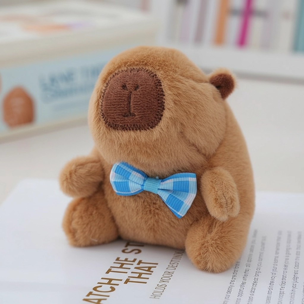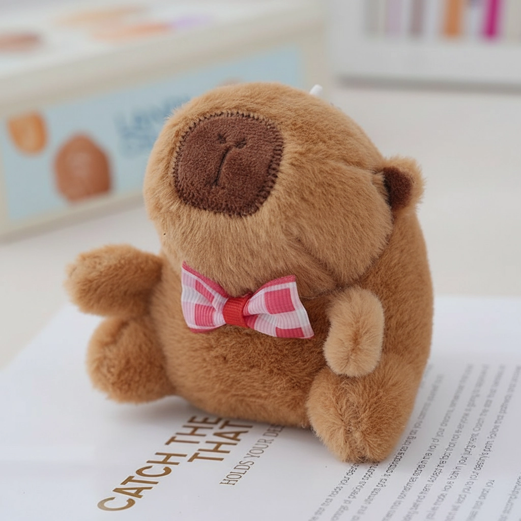 The Most Polite Plushie You’ll Meet Meet the gentleman of the capybara world. This plush keychain moves away from wacky costumes and embraces a classic, clean look. Sitting obediently with a sweet expression, this little capybara is dressed to impress with a smart bow tie. It’s the ideal accessory for those who appreciate a more understated, charming aesthetic.