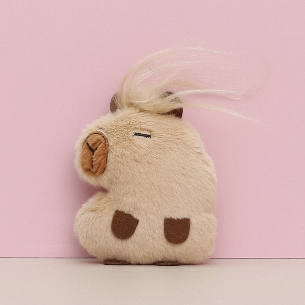 The Rapunzel of Rodents Meet the most glamorous rodent in the animal kingdom. This Capybara Plush Keychain distinguishes itself with a magnificent, long blonde mane sprouting from its head. Unlike standard plushies with short fur, this unique design invites you to play, style, and interact, turning a simple bag charm into a source of creative entertainment.