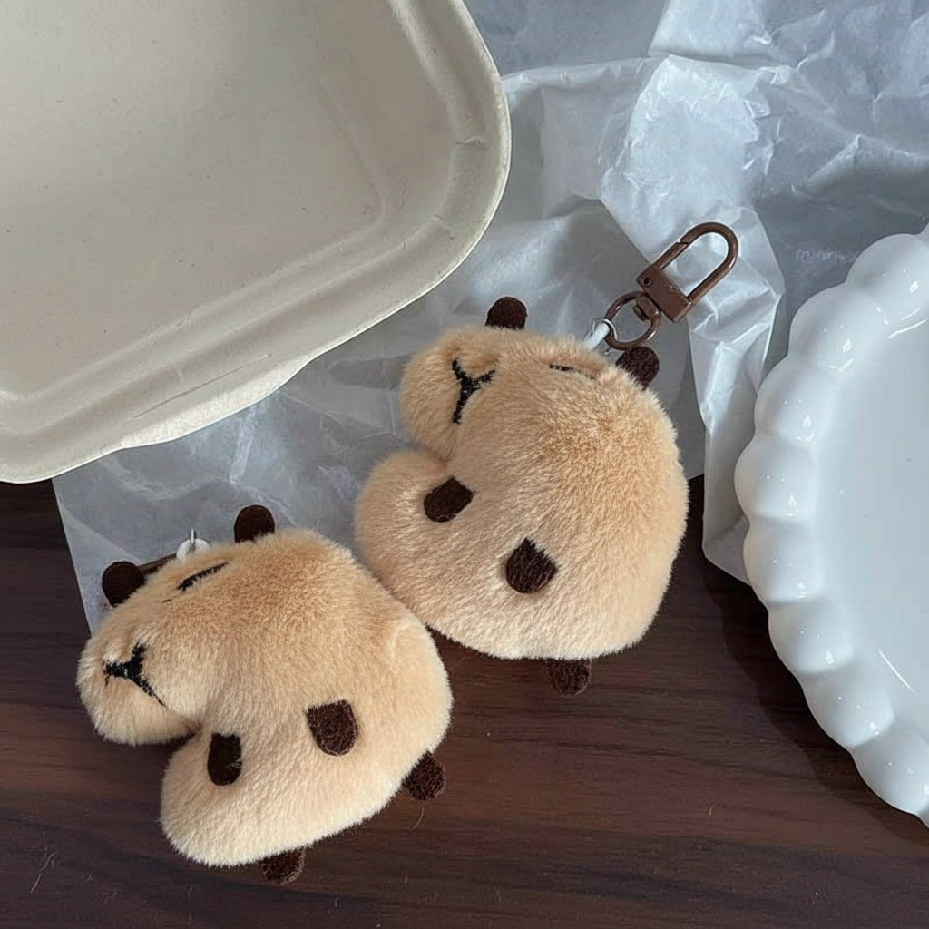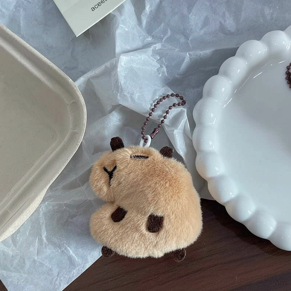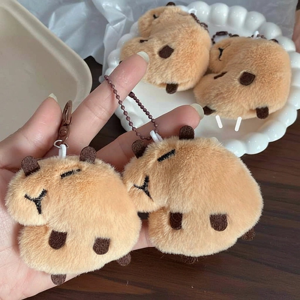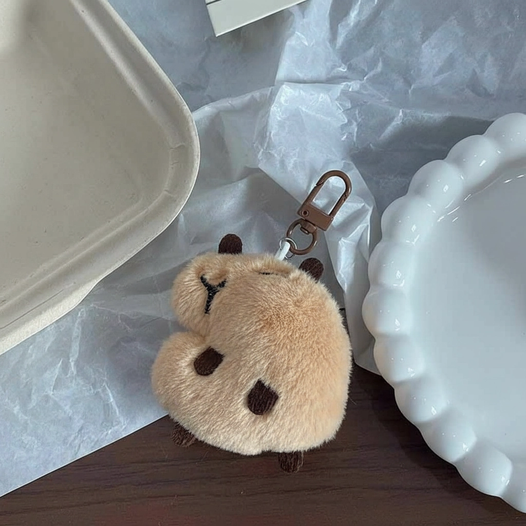The Vocal Companion Add a playful auditory element to your daily routine with this Squeaky Edition Capybara. While it looks like a peacefully sleeping rodent on the outside, this little plush has a hidden talent. It is designed not just to be looked at, but to be squeezed, offering a fun interactive experience that distinguishes it from standard static keychains.