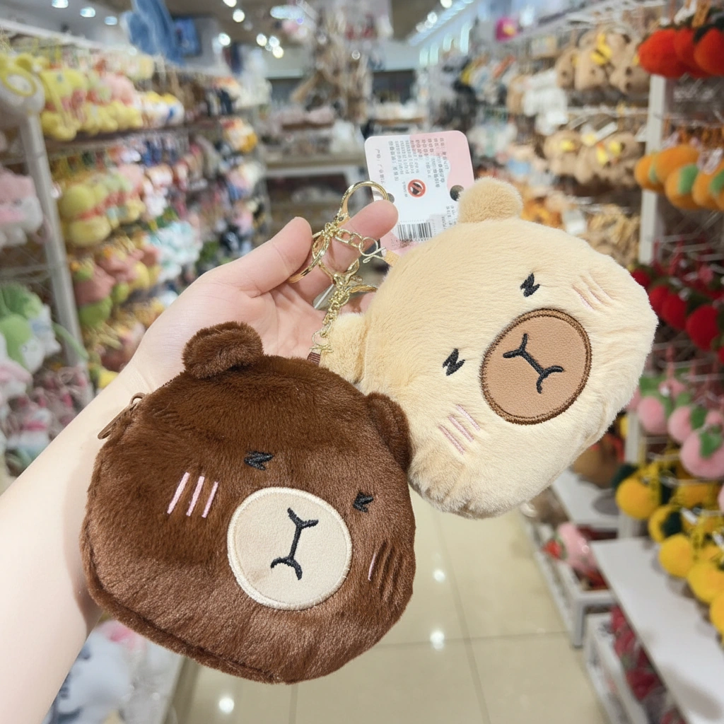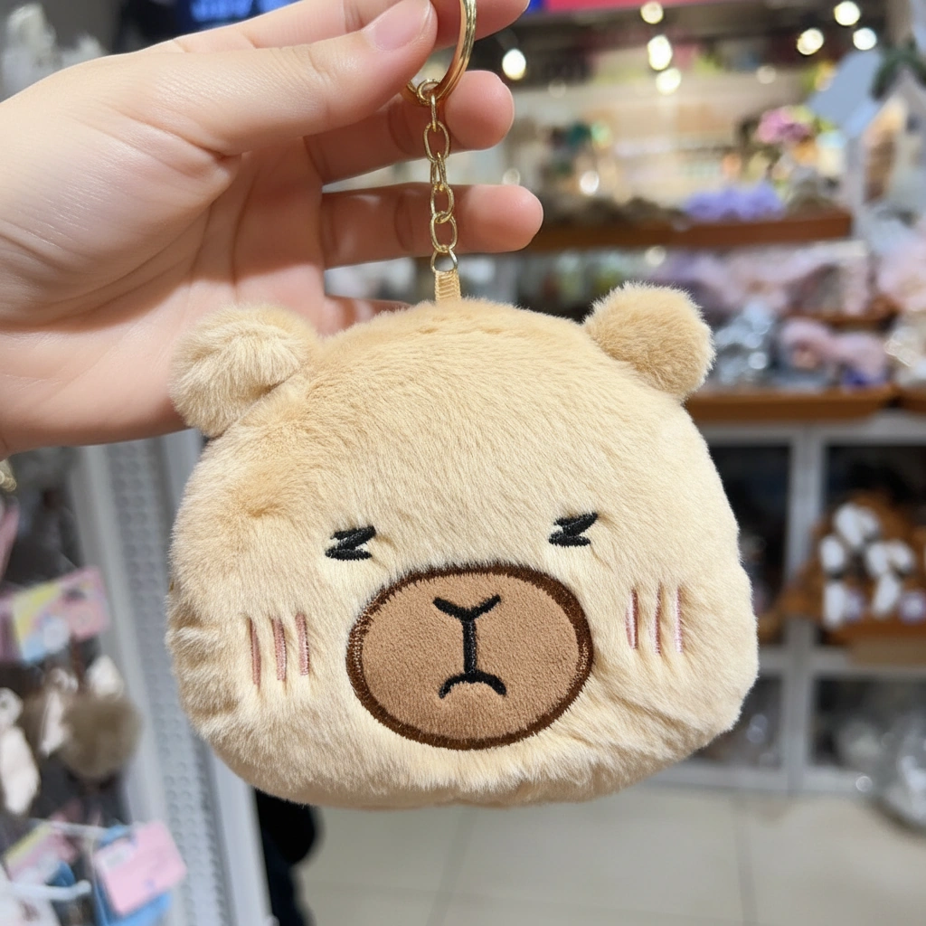 Sleepy Capybara Purse Plush Keychain – Fluffy 3D Head Coin Pouch (2 Colors)