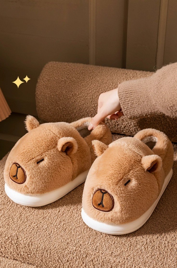 Designed with a fully enclosed heel and a soft plush exterior, they turn your feet into adorable capybara loaves while providing the support of a real shoe.