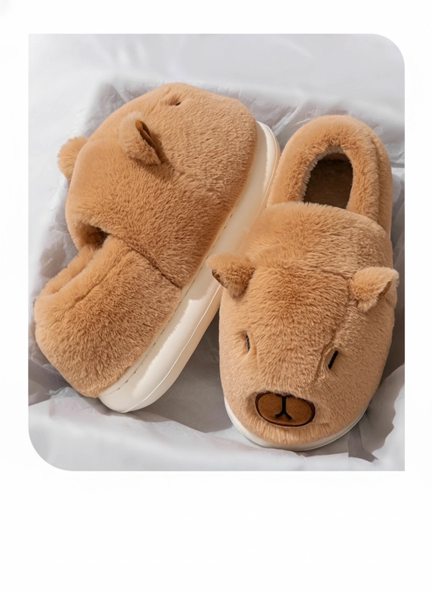 Capybara Shoes (1 Pair) – Plush Slip-On Sneakers with Rubber Sole – 2 Colors