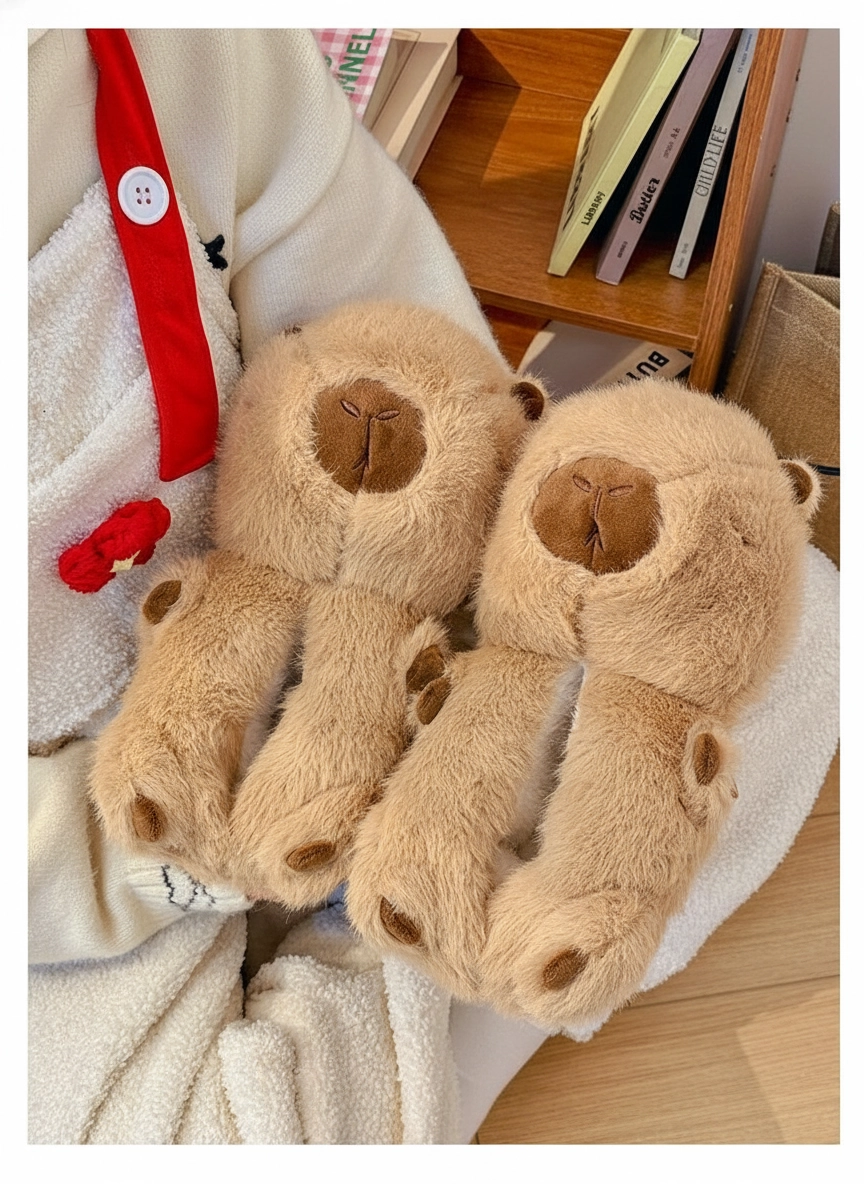 Fluffy Capybara Shoes (1 Pair) – Soft Plush 3D Animal Slippers