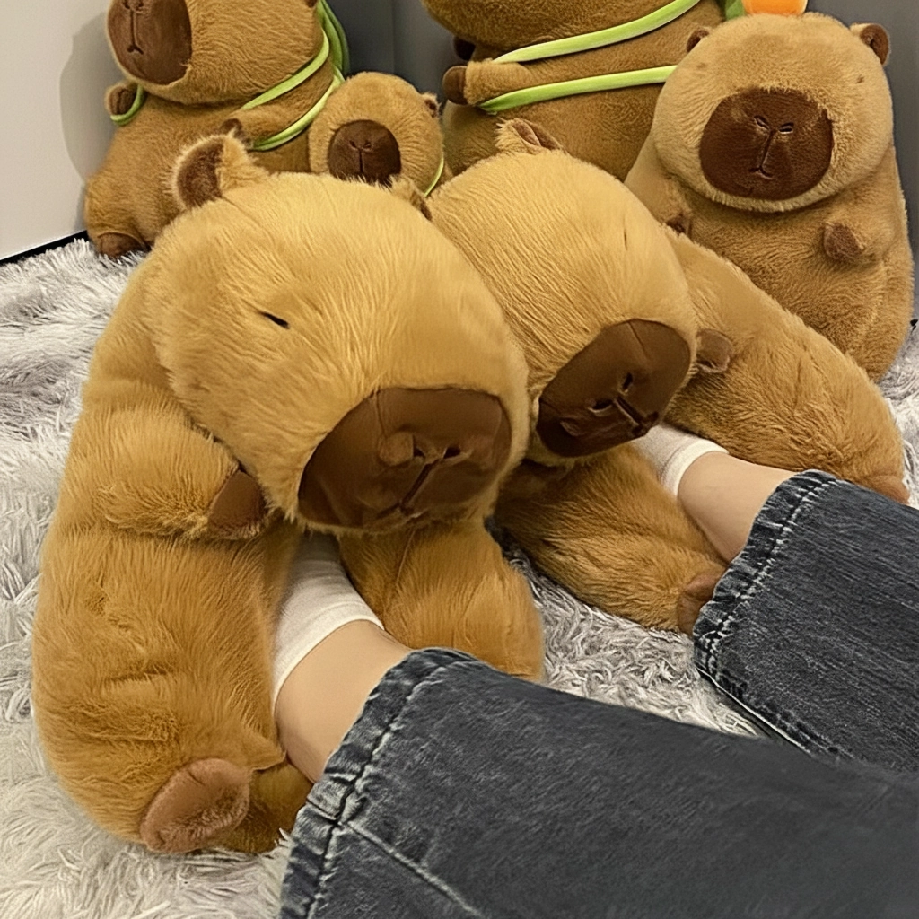 Why wear normal slippers when you can wear Giant Capybara Plush Shoes? These aren’t just footwear; they are an experience. Designed to be deliberately oversized, these slippers engulf your feet in a cloud of soft plush, making them the coziest thing you will ever own. Perfect for lounging, gaming, or just shuffling around the house in total comfort, they turn every step into a soft, squishy delight.