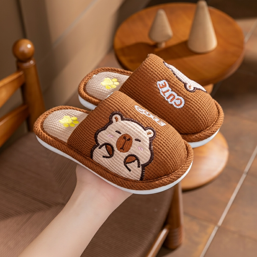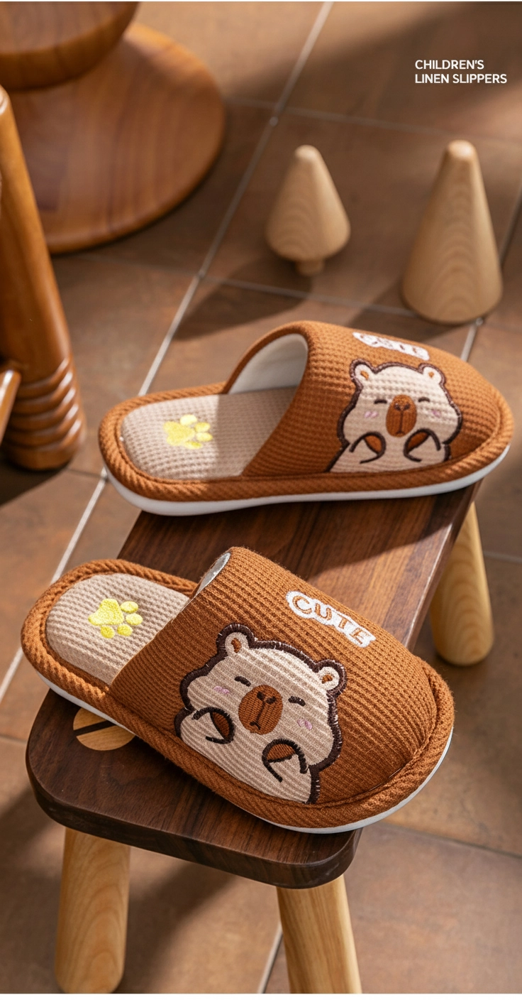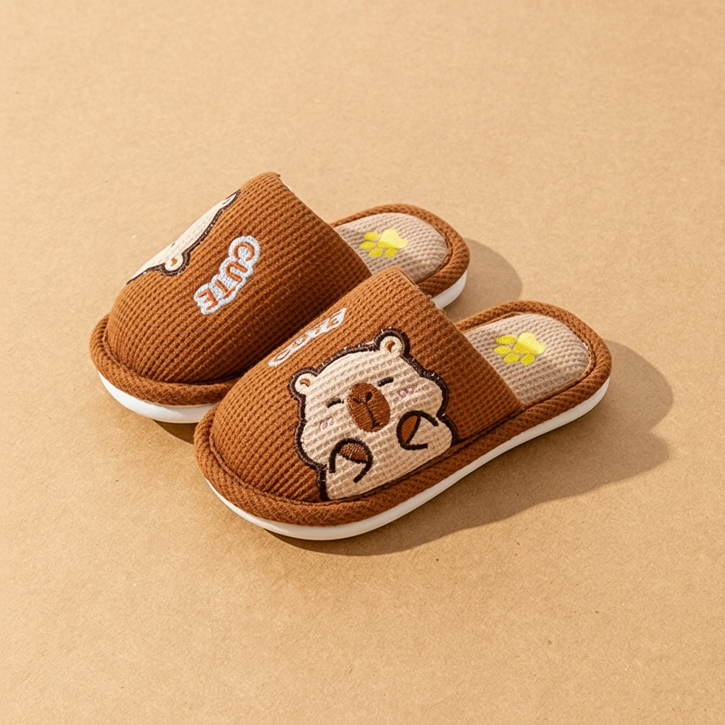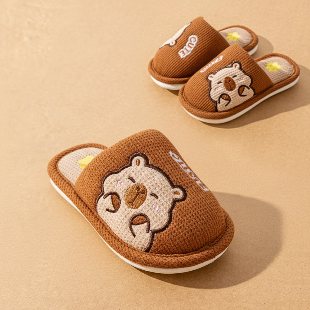 Waffle Knit Capybara Slippers – Breathable Cotton Blend Slides (Kids & Adult Sizes)