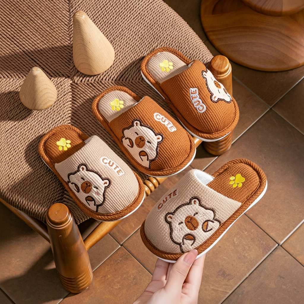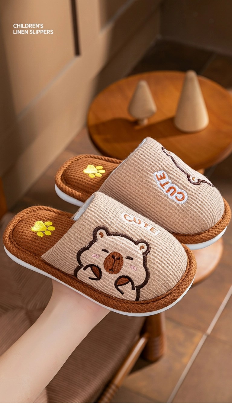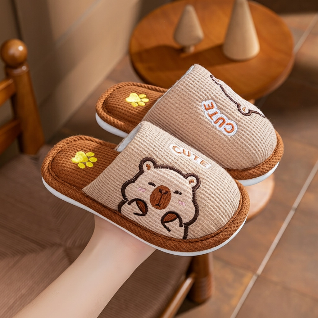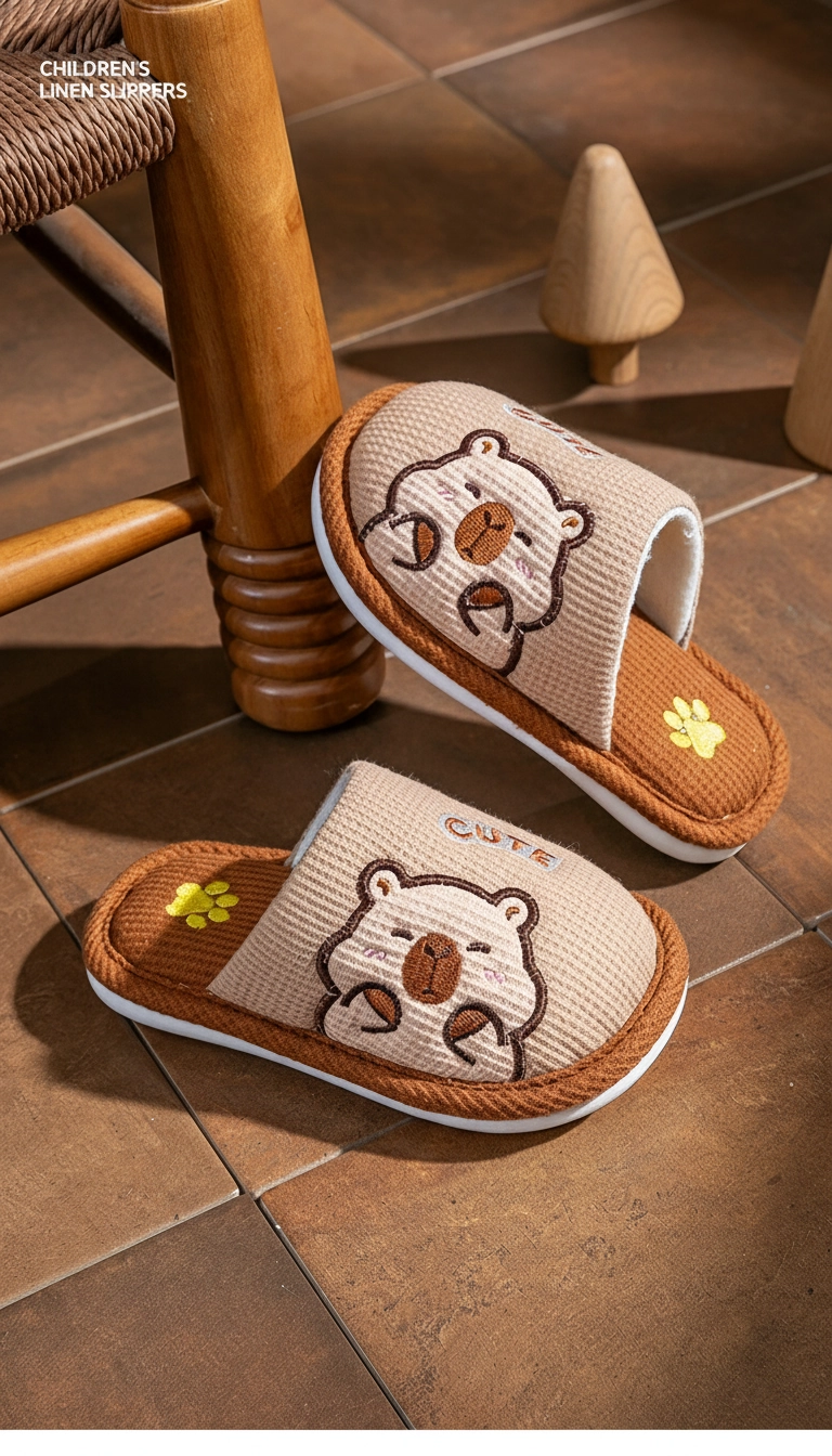 Waffle Knit Capybara Slippers – Breathable Cotton Blend Slides (Kids & Adult Sizes)