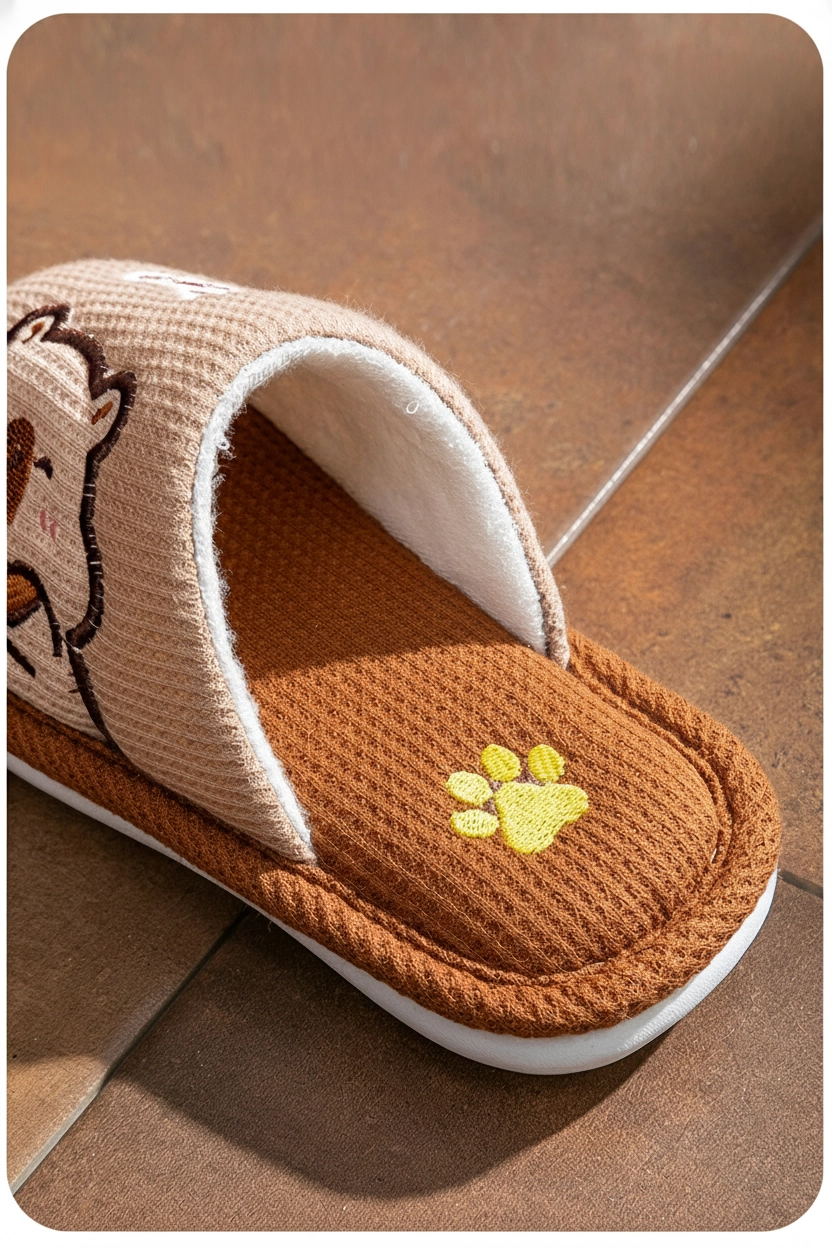 Say goodbye to sweaty feet and hello to breathable bliss. These Waffle Knit Capybara Slippers are crafted with a textured cotton-blend upper that offers excellent airflow while keeping your toes cozy. Featuring a high-quality embroidered capybara shyly holding its cheeks (and the word “CUTE” stitched right above), these slides are perfect for year-round wear.