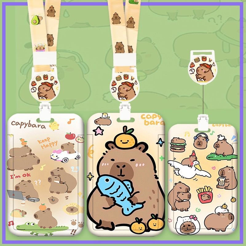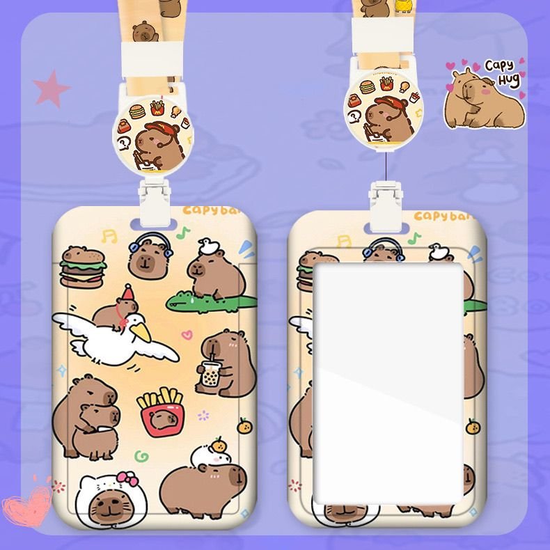 Cute Capybara ID Card Holder with Lanyard – Retractable Badge Reel Case (4 Styles)