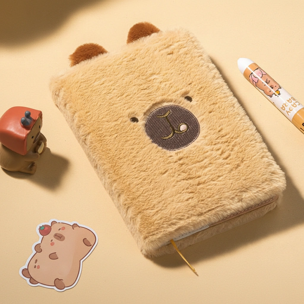 Get ready for the softest writing experience of your life. This Fuzzy Capybara Notebook isn’t just a place to store your thoughts—it’s a sensory delight. Wrapped in ultra-soft, plush faux fur, this journal feels just like petting a real capybara (well, almost!). It’s designed to bring a sense of comfort and “chill” to your daily study sessions or journaling routine.