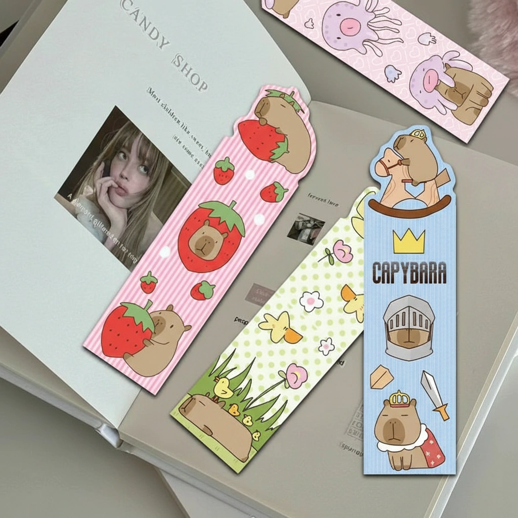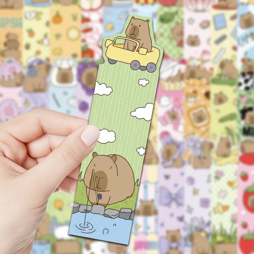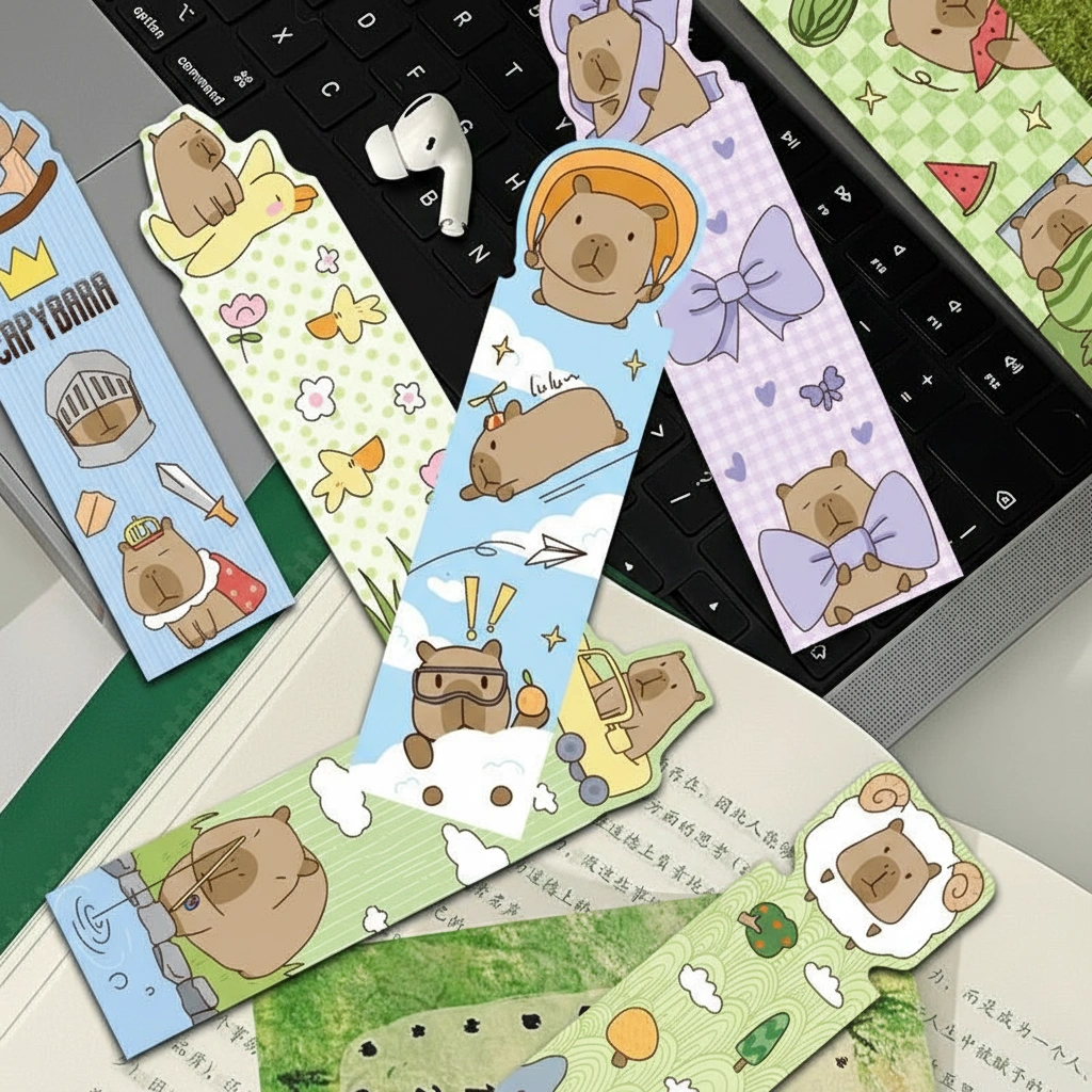 Why settle for one boring bookmark when you can have thirty? This massive Set of 30 Capybara Bookmarks ensures you always have a cute friend to save your spot. Whether you are reading a cookbook, a fantasy novel, or a textbook, there is a specific capybara design to match the mood. From a “Chef Capy” baking bread to a “Knight Capy” wielding a sword, this collection is a burst of dopamine for book lovers of all ages.