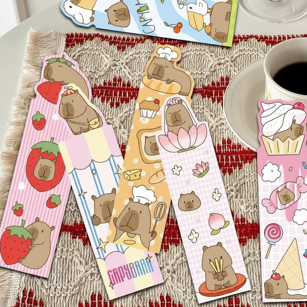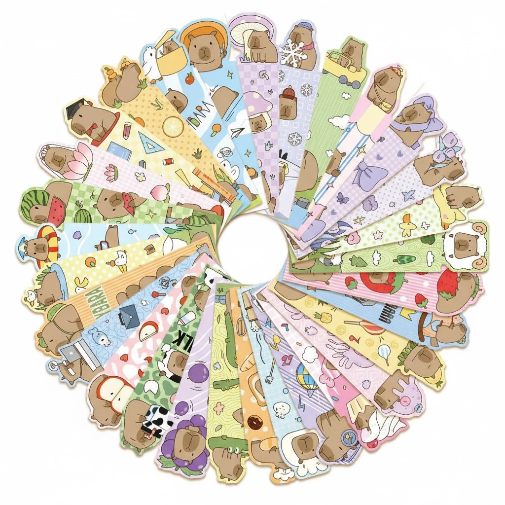 Cute Capybara Paper Bookmarks Set – 30pcs Kawaii Page Markers (Assorted Cartoon Designs)