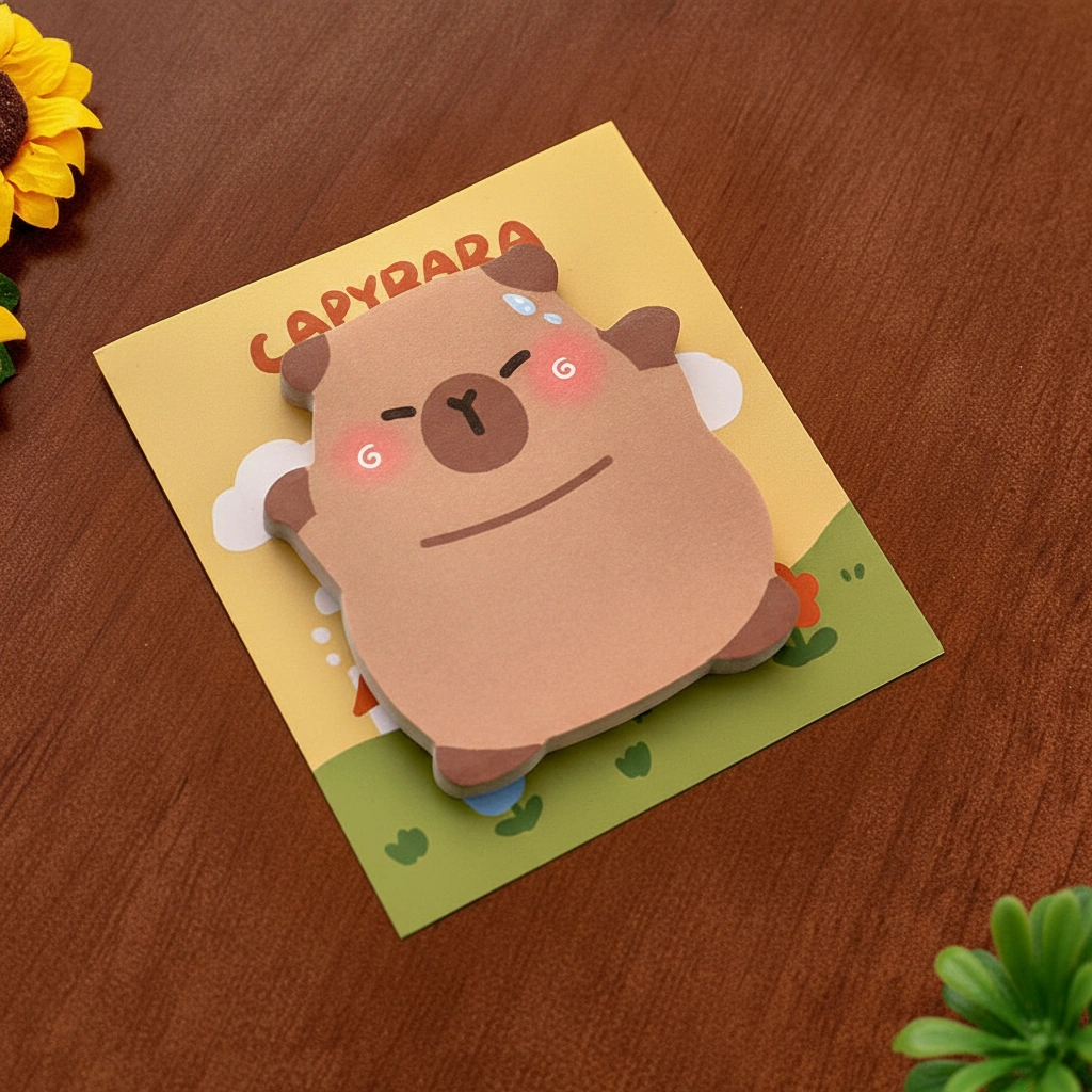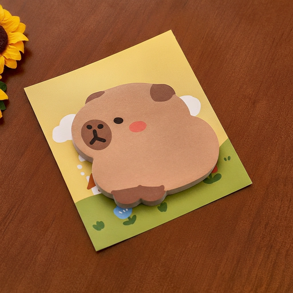 • Die-Cut “Shaped” Design: Unlike standard rectangular notes, these are custom-cut to follow the chubby outline of the capybara, creating a fun silhouette on any surface.