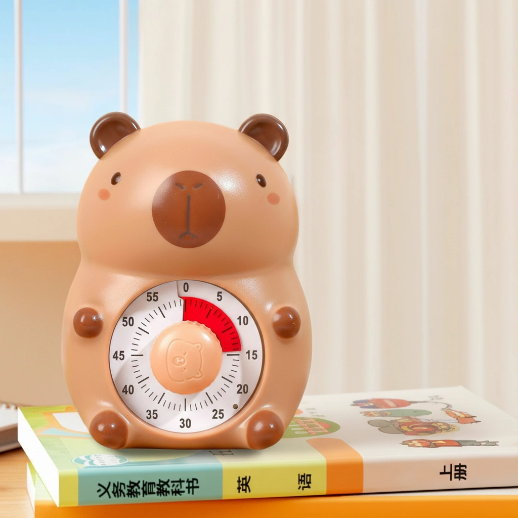 Cute Capybara Visual Timer for Kids – Rechargeable 60-Minute Countdown Clock (Silent Study Tool)