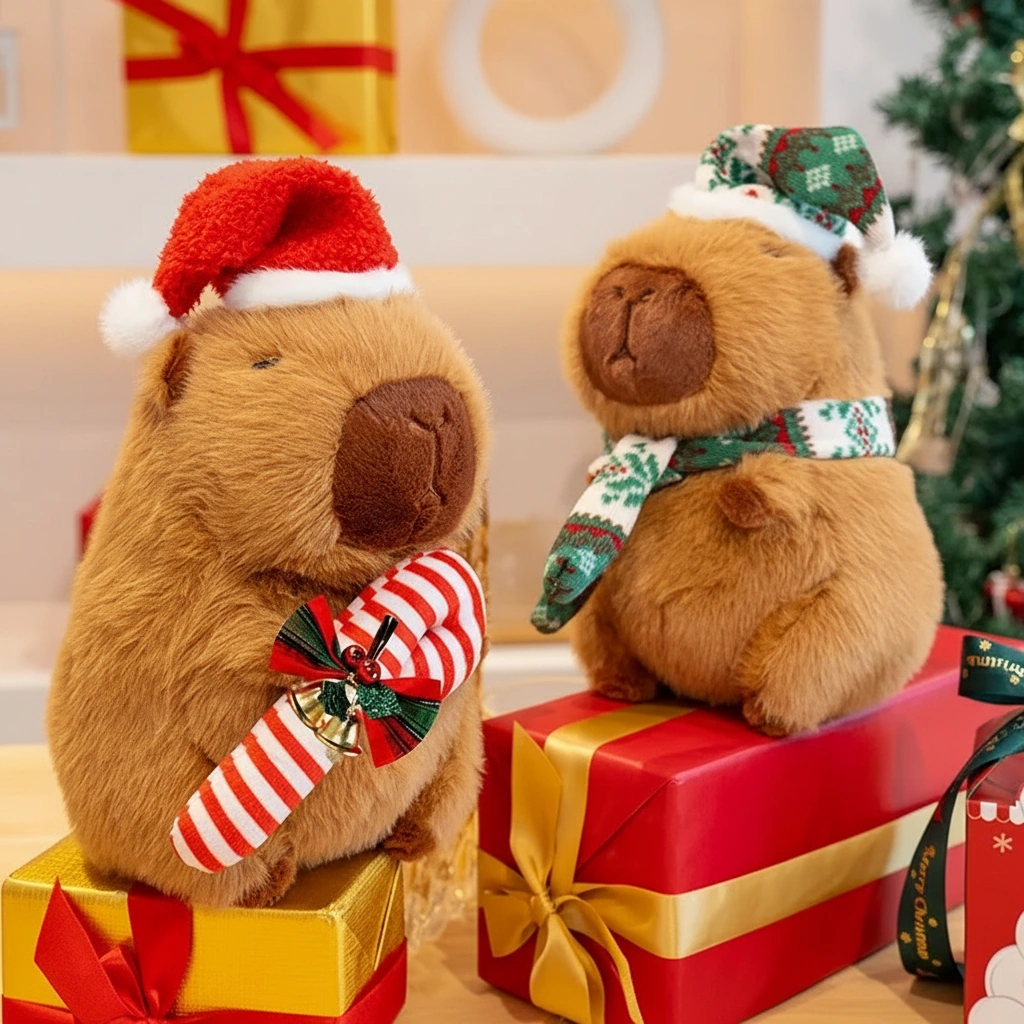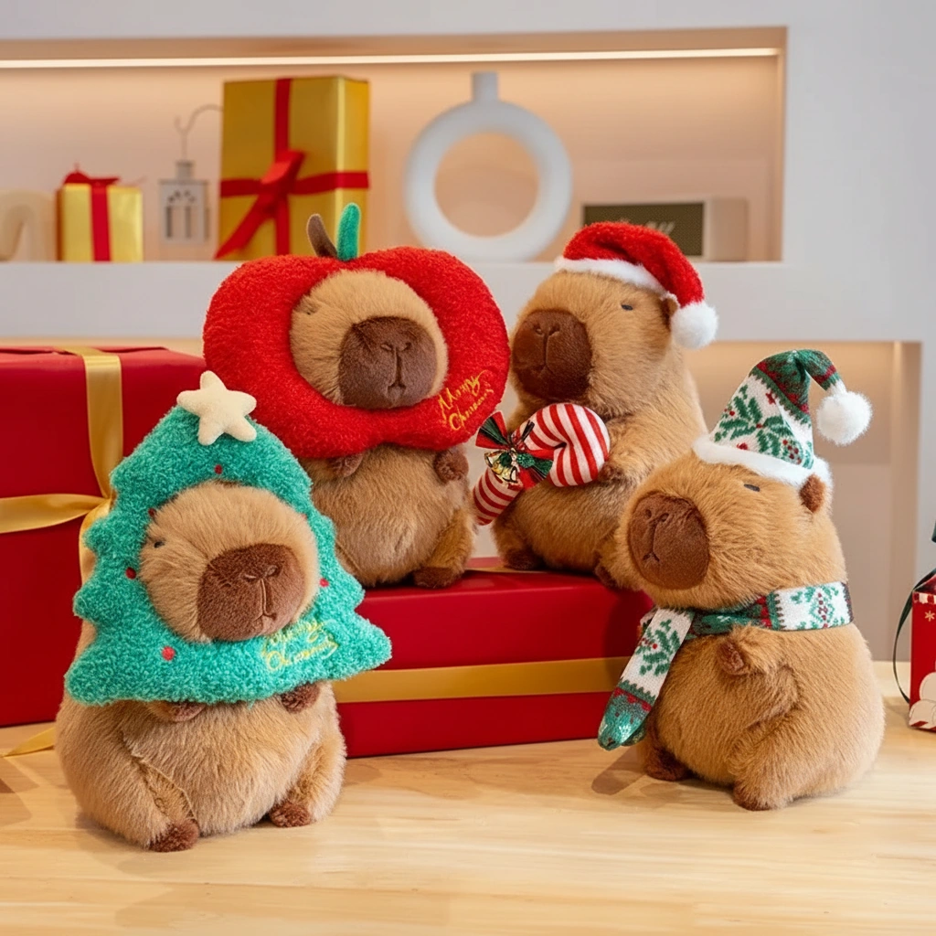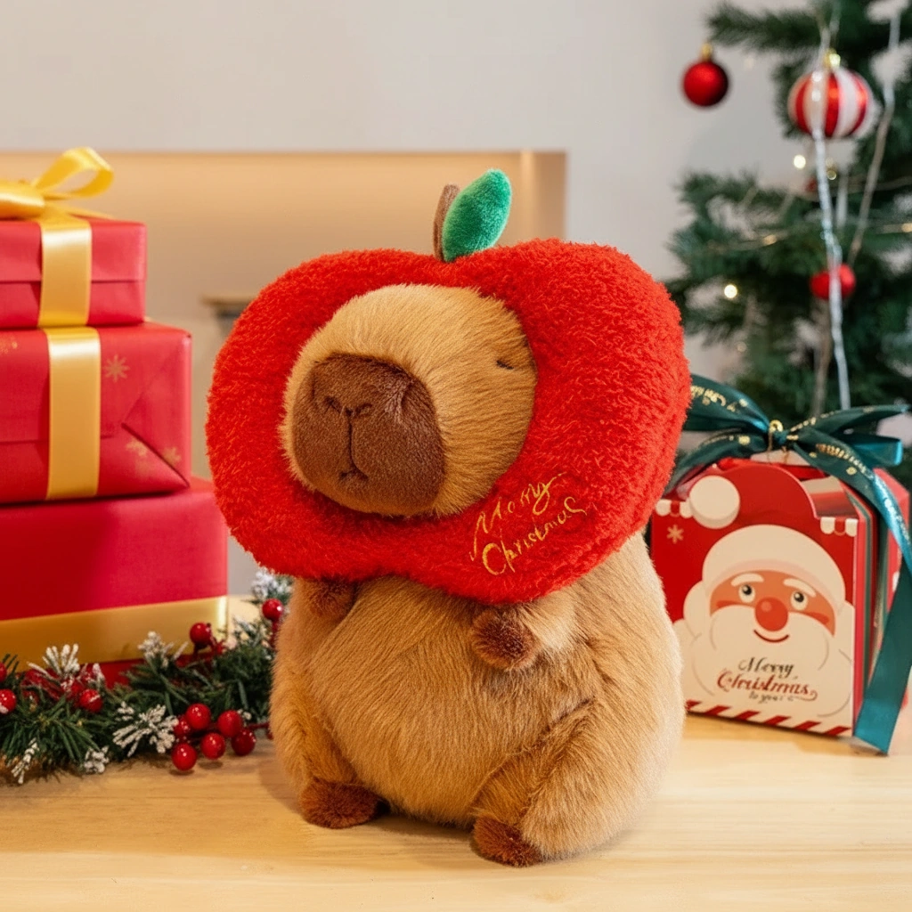 Christmas Capybara Plush Toy – 4 Festive Styles (Tree, Apple, Santa Hat, Scarf) – 9.8″ Holiday Gift