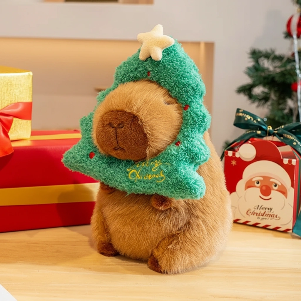- The Christmas Tree Capy: Features a fluffy green Christmas tree headgear adorned with a star and “Merry Christmas” embroidery. The ultimate festive disguise.