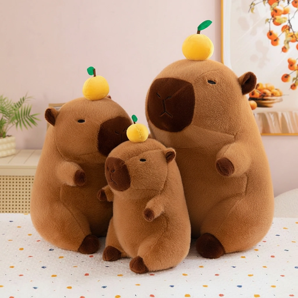 If you are searching for the perfect capybara plush, look no further. This design isn’t just a toy; it’s a mood. The addition of the citrus fruit adds a pop of color and character, distinguishing it from standard stuffed animals. It makes for an ideal gift for anime fans, animal lovers, or anyone who needs a little more “chill” in their life.