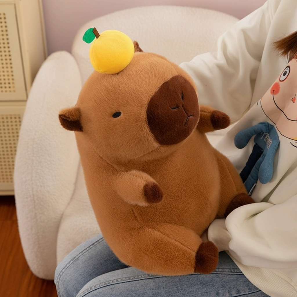 Embrace the unbothered lifestyle of the world’s most relaxed rodent. Our Capybara Plush with Orange on Head captures the internet’s favorite animal in its peak state of zen. Whether you are looking for a cuddle buddy for your couch or a desk companion to keep you calm during work, this plushie serves as a constant reminder to take a deep breath and relax.