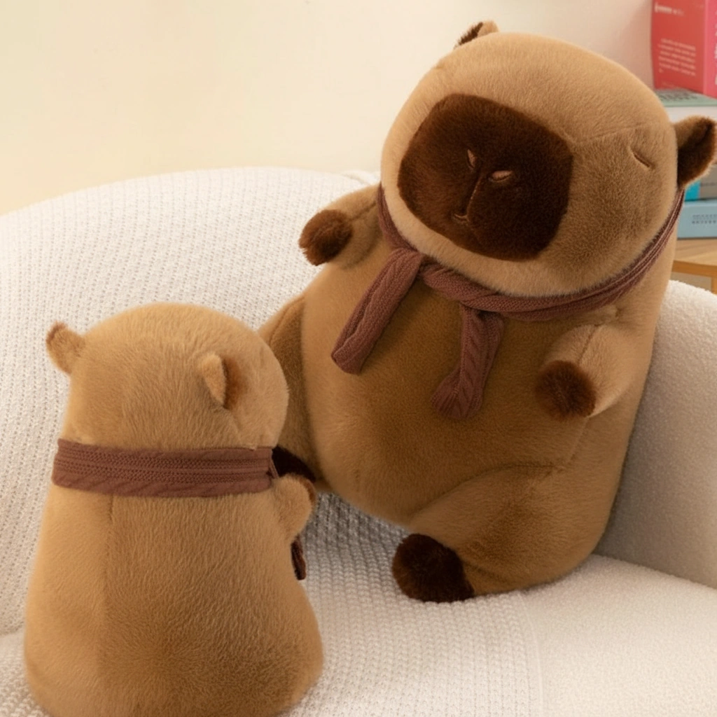 Cozy Capybara Plush with Knitted Scarf – Soft Winter Stuffed Animal (9″ – 18″)