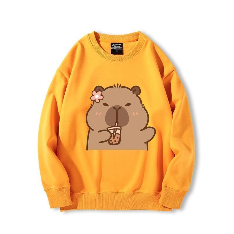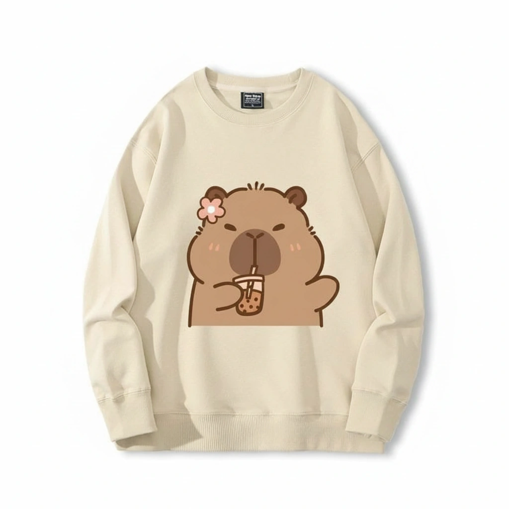What’s better than a chill capybara? A chill capybara drinking bubble tea! This Capybara Sweatshirt brings together two of the world’s absolute favorites into one adorable design. Whether you call it boba, pearl milk tea, or just a sweet treat, this crewneck is the perfect attire for your next tea run or lazy Sunday at home.