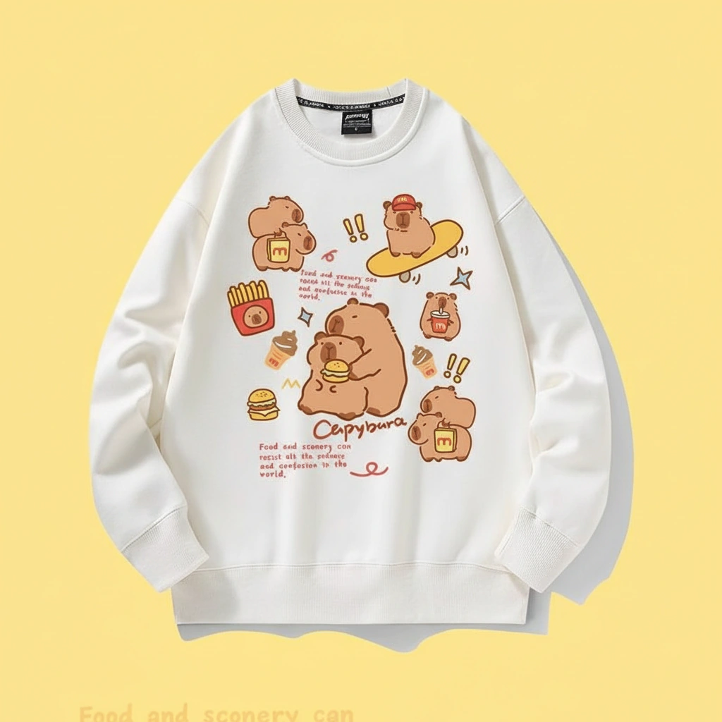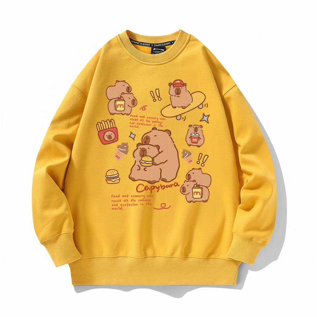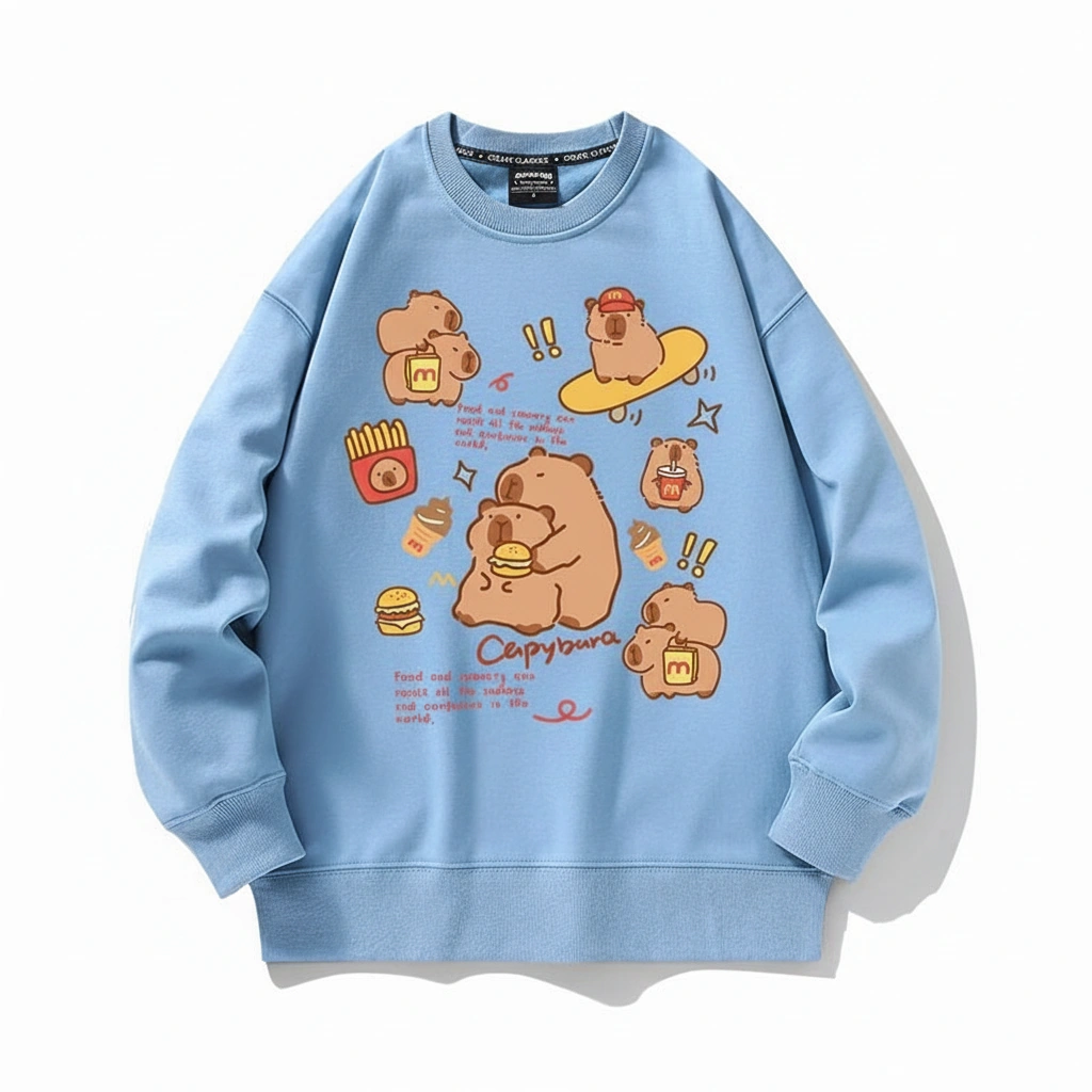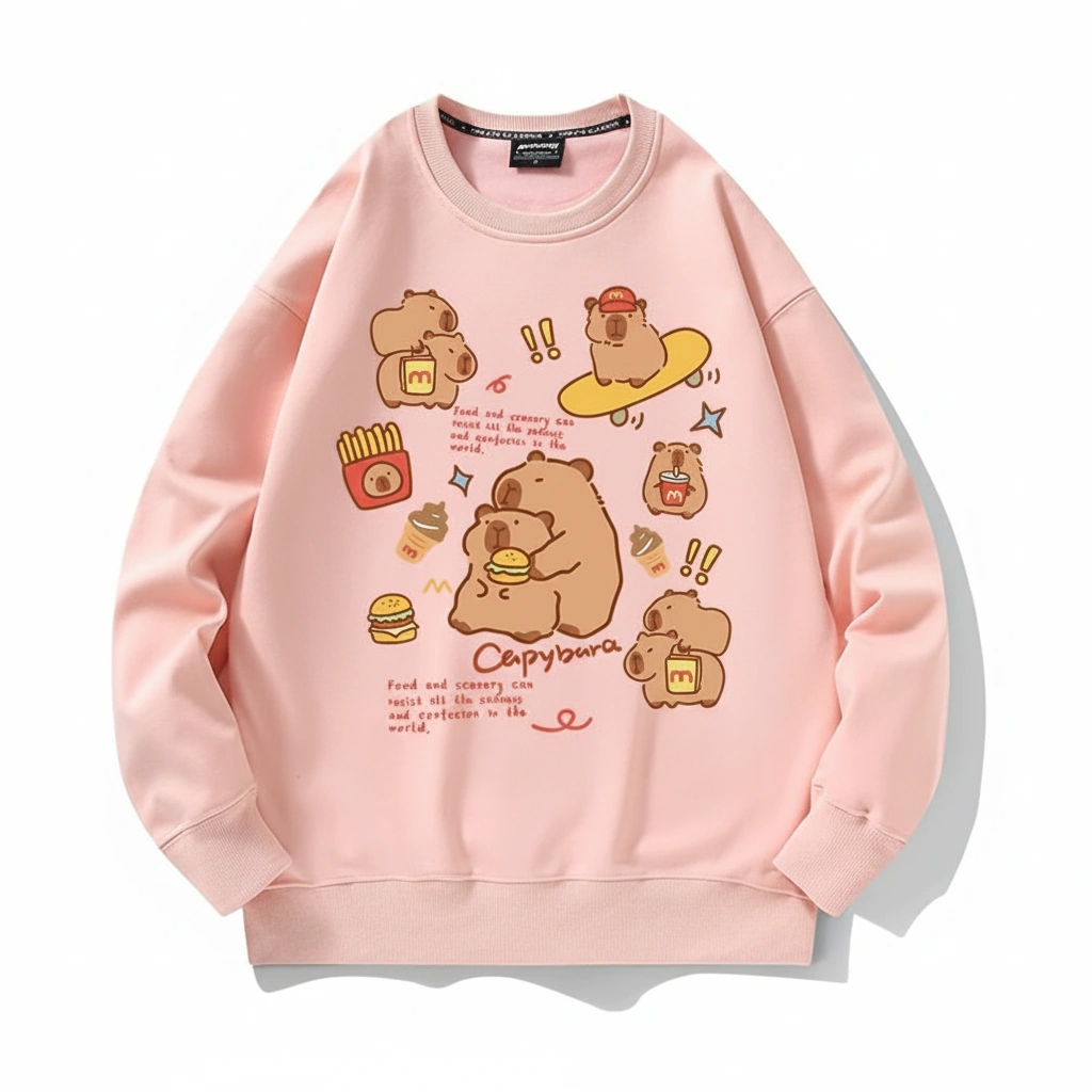 Cute Capybara Sweatshirt Fast Food & Skater Graphic Crewneck – 4 Colors