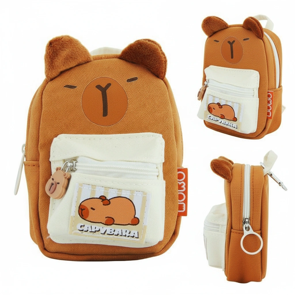 Your Daily Essentials, Capybara Style Upgrade your daily carry with a functional accessory that doubles as a statement piece. This is not just a coin holder; it is designed like a miniature backpack, complete with 3D plush ears and a sturdy canvas build. It serves as an excellent “bag buddy”—clip it onto your main backpack, tote, or belt loop to keep your small items accessible without digging around.