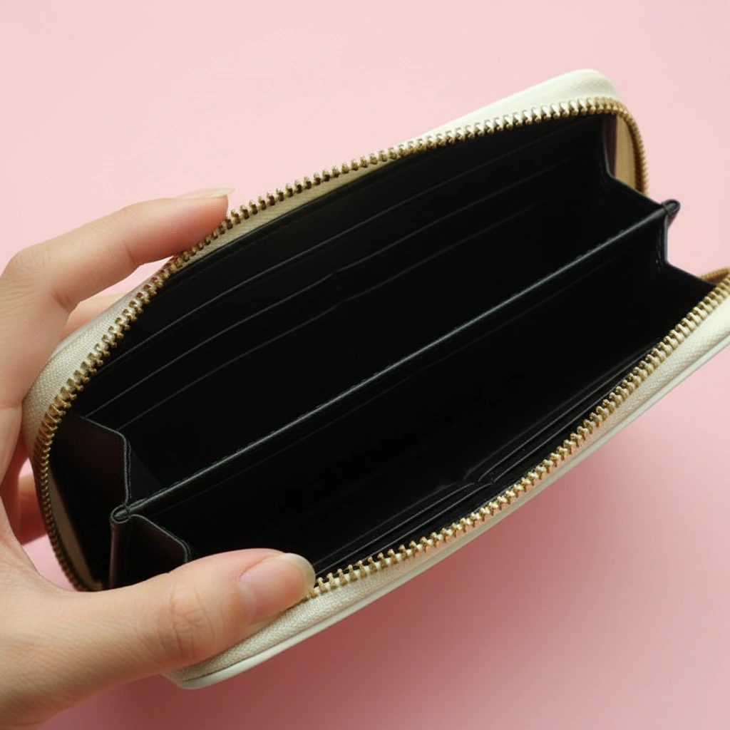 - Full Zip Protection: The gold-tone metal zipper wraps fully around the wallet, ensuring your cash and receipts never slip out.